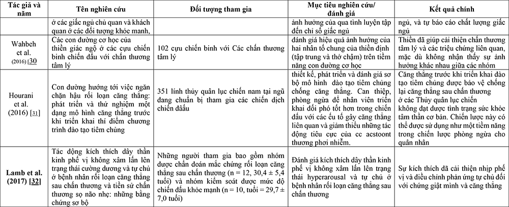 Tiêu chí đưa vào để nghiên cứu như sau: (1) các nghiên cứu về đáp ứng tâm sinh lý, căng thẳng, điều hòa căng thẳng, nhịp tim, sự biến thiên nhịp tim và PTSD; (2) các nghiên cứu tập trung vào các đối tượng nghiên cứu là quân nhân tiếp xúc với các tình huống căng thẳng; (3) các nghiên cứu được công bố từ năm 2013 đến năm 2019; (4) các nghiên cứu được xuất bản bằng tiếng Anh; (5) thiết kế của các nghiên cứu đáp ứng mức độ 2 (nghiên cứu thuần tập tiền cứu và nghiên cứu hồi cứu), theo hướng dẫn chấm điểm của tạp chí The Journal of Bone and Joint Surgery [8].