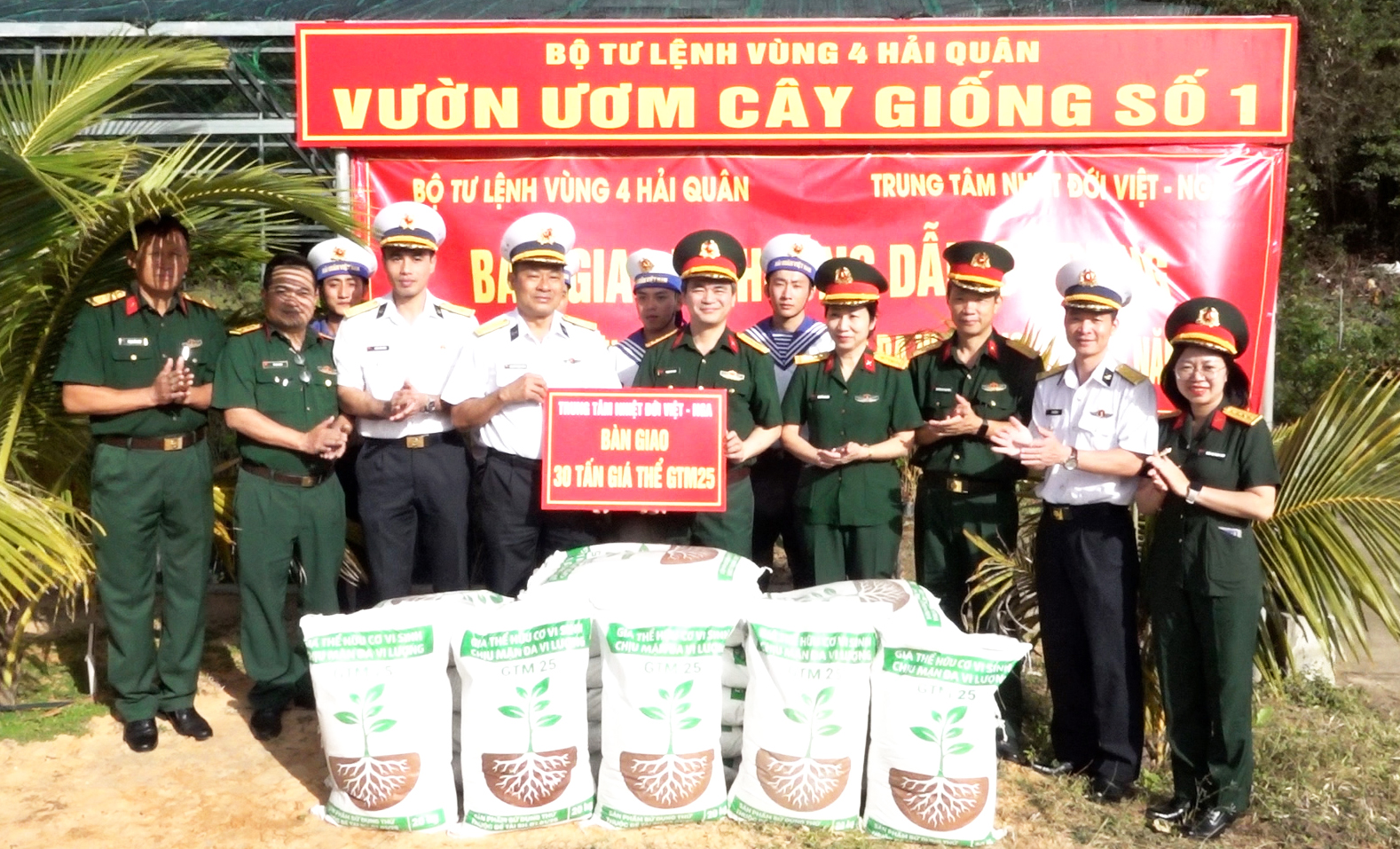 Trung tâm bàn giao 45 tấn giá thể hữu cơ vi sinh chịu mặn đa vi lượng GTM25 cho Bộ Tư lệnh Vùng 4 và Bộ Tư lệnh Vùng 2 Hải quân.
