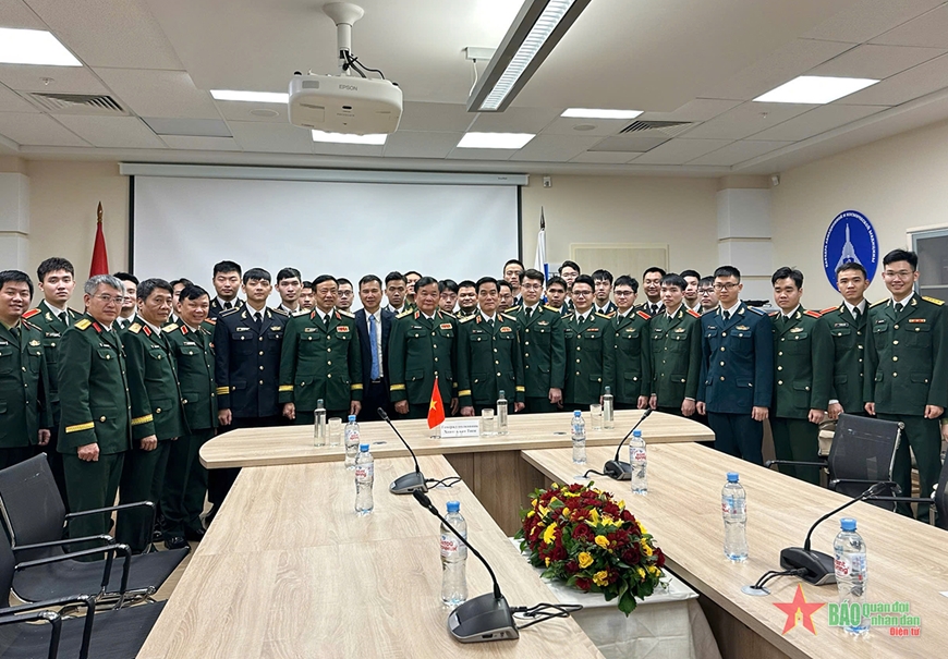Thượng tướng Hoàng Xuân Chiến gặp lưu học sinh Việt Nam tại Học viện Quân y Kirov.
