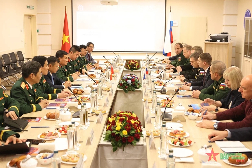 Thượng tướng Hoàng Xuân Chiến và đoàn công tác làm việc với Học viện Quân y Kirov.