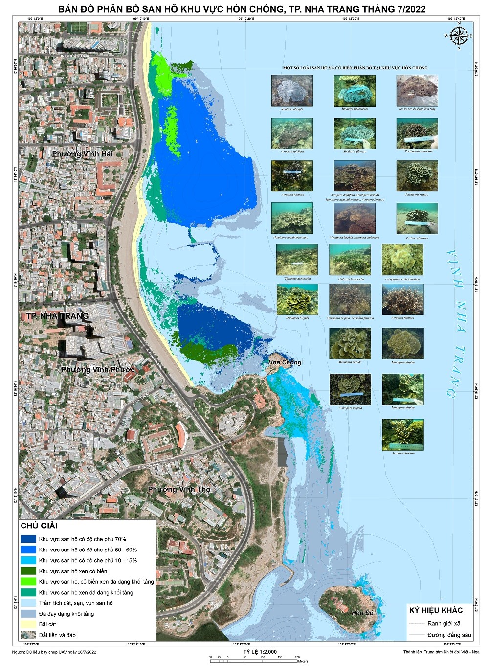Bản đồ phân vùng san hô ở Hòn Chồng, lập tháng 7/2022. Nguồn: TT Nhiệt đới Việt - Nga.