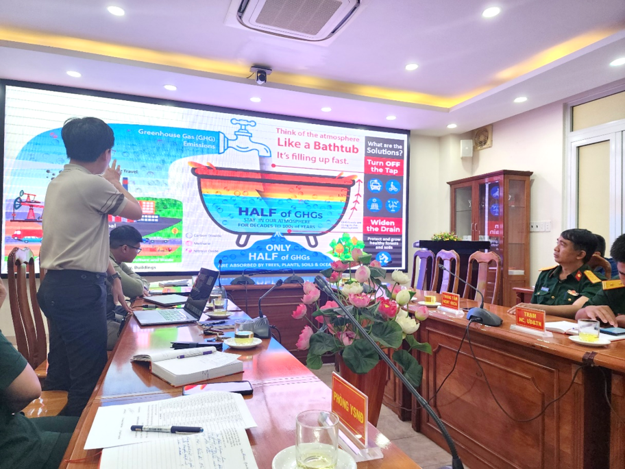Phát biểu khai mạc buổi tọa đàm, đồng chí Trung tá Nguyễn Trọng Dân, Phó Giám đốc Chi nhánh nhấn mạnh: biến đổi khí hậu là vấn đề toàn cầu, là thách thức rất nghiêm trọng đối với nhân loại trong thế kỷ XXI, Việt Nam là một trong những quốc gia bị ảnh hưởng nặng nề từ biến đổi khí hậu. Do đó, cần nâng cao nhận thức cho toàn thể cán bộ khoa học trong Chi nhánh về vai trò và tầm quan trọng của việc bảo vệ môi trường, ứng phó biến đổi khí hậu, sử dụng hiệu quả nguồn tài nguyên trong phát triển kinh tế - xã hội, đặc biệt là nhiệm vụ đảm bảo quốc phòng - an ninh.