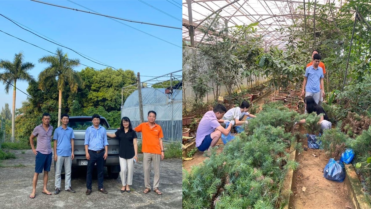Nhóm đề tài Viện Sinh thái nhiệt đới chuyển giao 500 cây giống cho BQL KBTTN Pù Hoạt - Nghệ An. (Ảnh: Phạm Mai Phương và cộng sự).