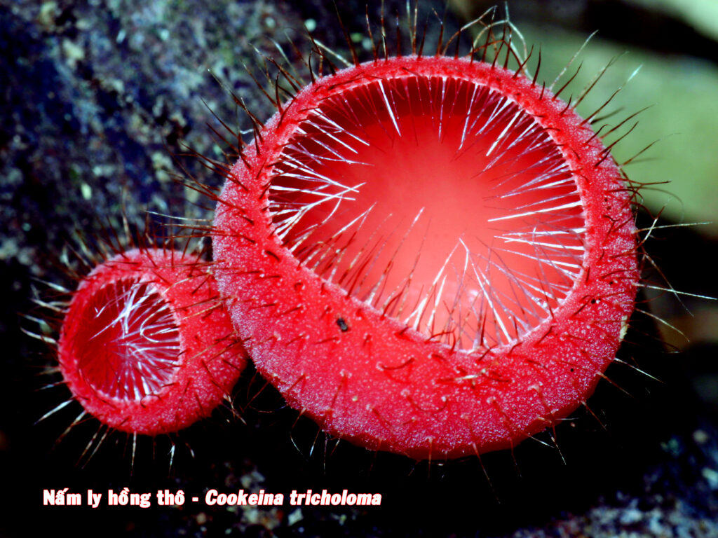 Nấm ly hồng thô - Cookeina tricholoma. Đây là loài nấm có tình trạng bảo vệ là VU (Sách Đỏ Việt Nam 2007). (Nguồn: https://disanthiennhien.cebid.vn/no-luc-bao-ton/cong-uoc-quoc-te).