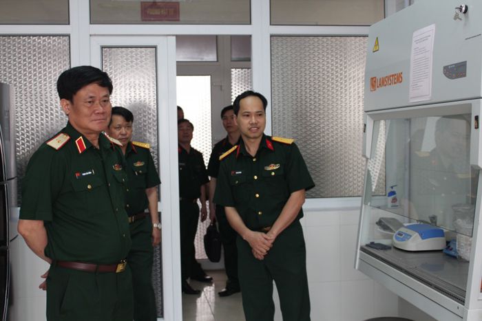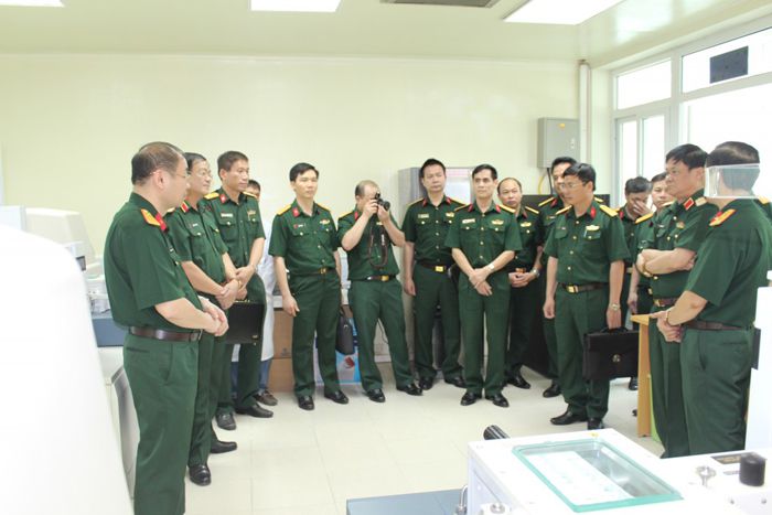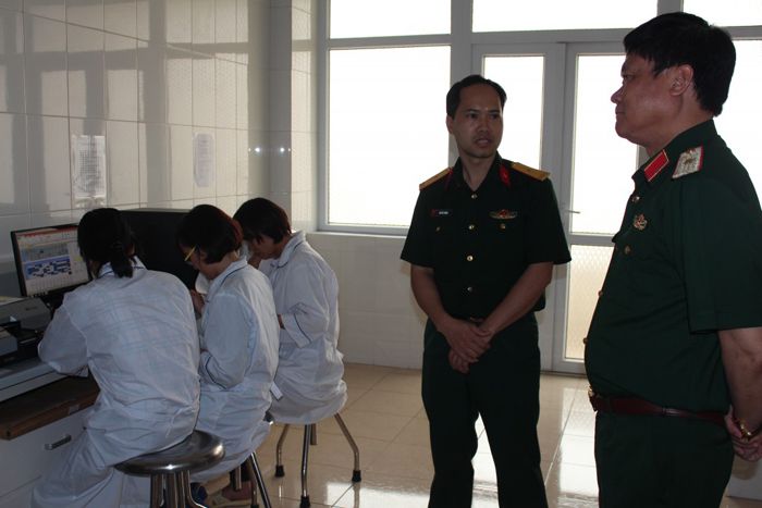 Đoàn công tác tham quan và kiểm tra các phòng thí nghiệm. Ảnh Đăng Đoàn