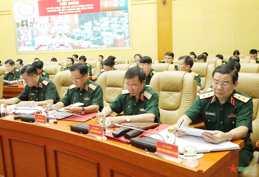 Đại tướng Phan Văn Giang giao Bộ Tổng Tham mưu chỉ đạo cơ quan chức năng và các cơ quan, đơn vị liên quan tiếp tục quán triệt, triển khai thực hiện nghiêm Nghị quyết của Quân ủy Trung ương, Kế hoạch của Bộ Quốc phòng thực hiện về tổ chức QĐND Việt Nam giai đoạn 2021 - 2030 và những năm tiếp theo; rà soát, kịp thời đề xuất cấp có thẩm quyền sửa đổi, bổ sung, ban hành mới quy định chức năng, nhiệm vụ, quyền hạn và mối quan hệ công tác của các cơ quan, đơn vị trong toàn quân, bảo đảm tính đồng bộ, đầy đủ, thống nhất, khả thi và không bị chồng chéo. Đẩy nhanh tiến độ rà soát, tái cấu trúc để đưa các thủ tục hành chính thuộc thẩm quyền, trách nhiệm giải quyết trên Cổng dịch vụ công Bộ Quốc phòng; tiếp tục triển khai thí điểm thực hiện trên môi trường điện tử đối với 7 thủ tục hành chính lĩnh vực nghĩa vụ quân sự theo lộ trình.
