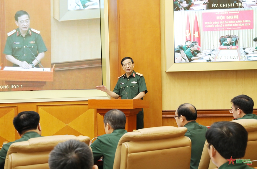 Phát biểu chỉ đạo tại hội nghị, Đại tướng Phan Văn Giang khẳng định, Quân ủy Trung ương, Bộ Quốc phòng đã quyết liệt lãnh đạo, chỉ đạo tiếp tục đẩy mạnh thực hiện cải cách hành chính, chuyển đổi số cùng nhiều nội dung, nhiệm vụ được triển khai thực hiện với quyết tâm cao, sự vào cuộc của lãnh đạo, chỉ huy các cấp trong toàn quân và đã đạt được kết quả tích cực, góp phần hoàn thành tốt nhiệm vụ quân sự, quốc phòng 6 tháng đầu năm 2024.
