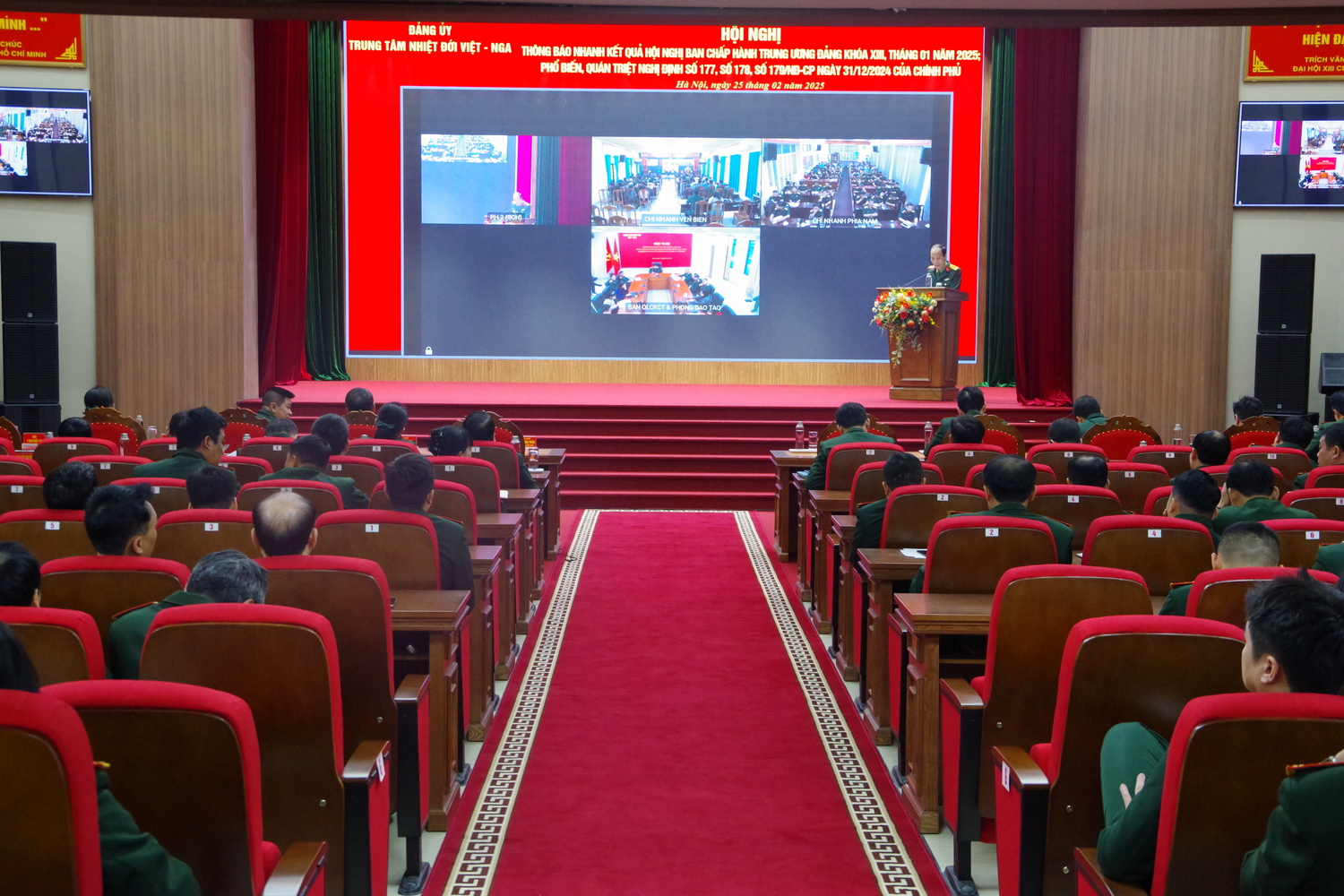 Đảng ủy Trung tâm Nhiệt đới Việt - Nga thông báo nhanh kết quả Hội nghị Ban Chấp hành Trung ương Đảng khóa XIII, tháng 01 năm 2025 và phổ biến, quán triệt Nghị định số 177, 178, 179/NĐ-CP ngày 31 tháng 12 năm 2024 của Chính phủ
