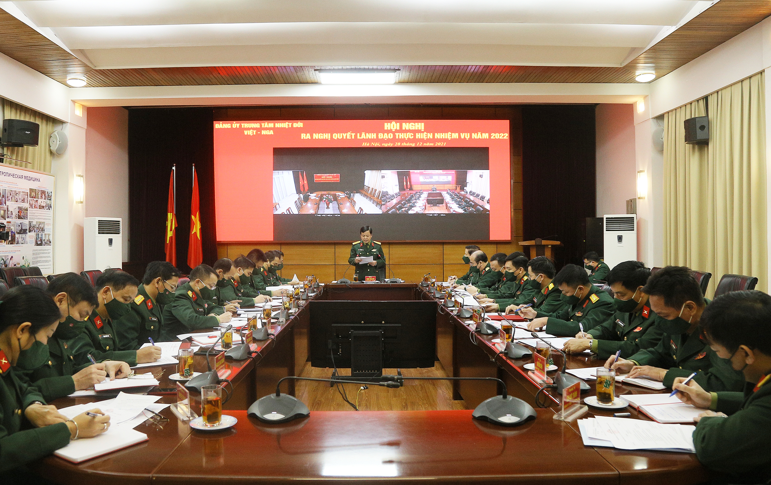 29/12/2021Sáng ngày 28 tháng 12 năm 2021, Đảng uỷ Trung tâm Nhiệt đới Việt - Nga tổ chức hội nghị ra nghị quyết lãnh đạo thực hiện nhiệm vụ năm 2022. Trung tướng Nguyễn Trọng Bình, Phó Tổng Tham mưu trưởng Quân đội Nhân dân Việt Nam dự và chỉ đạo hội nghị. Đại tá Trần Văn Duy, Bí thư Đảng uỷ, Phó Tổng Giám đốc Trung tâm chủ trì hội nghị. Cùng dự hội nghị có đồng chí Thiếu tướng Đặng Hồng Triển, Phó Bí thư Đảng uỷ, Tổng Giám đốc Trung tâm; các đồng chí trong Đảng uỷ Trung tâm và đại biểu một số cơ quan Tổng cục Chính trị.