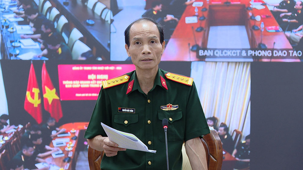 Đồng chí Đại tá Nguyễn Khắc Thăng, Bí thư Đảng uỷ, Phó Tổng Giám đốc Trung tâm quán triệt các nội dung tại hội nghị.