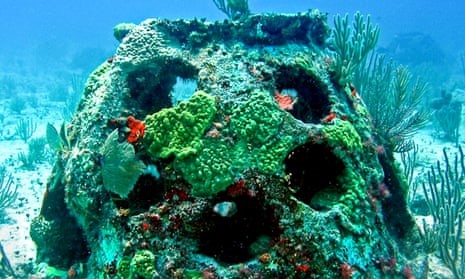 Một giá thể hình chuông đã được nhiều loài sinh vật biển định cư. Ảnh: Eternal Reefs.
