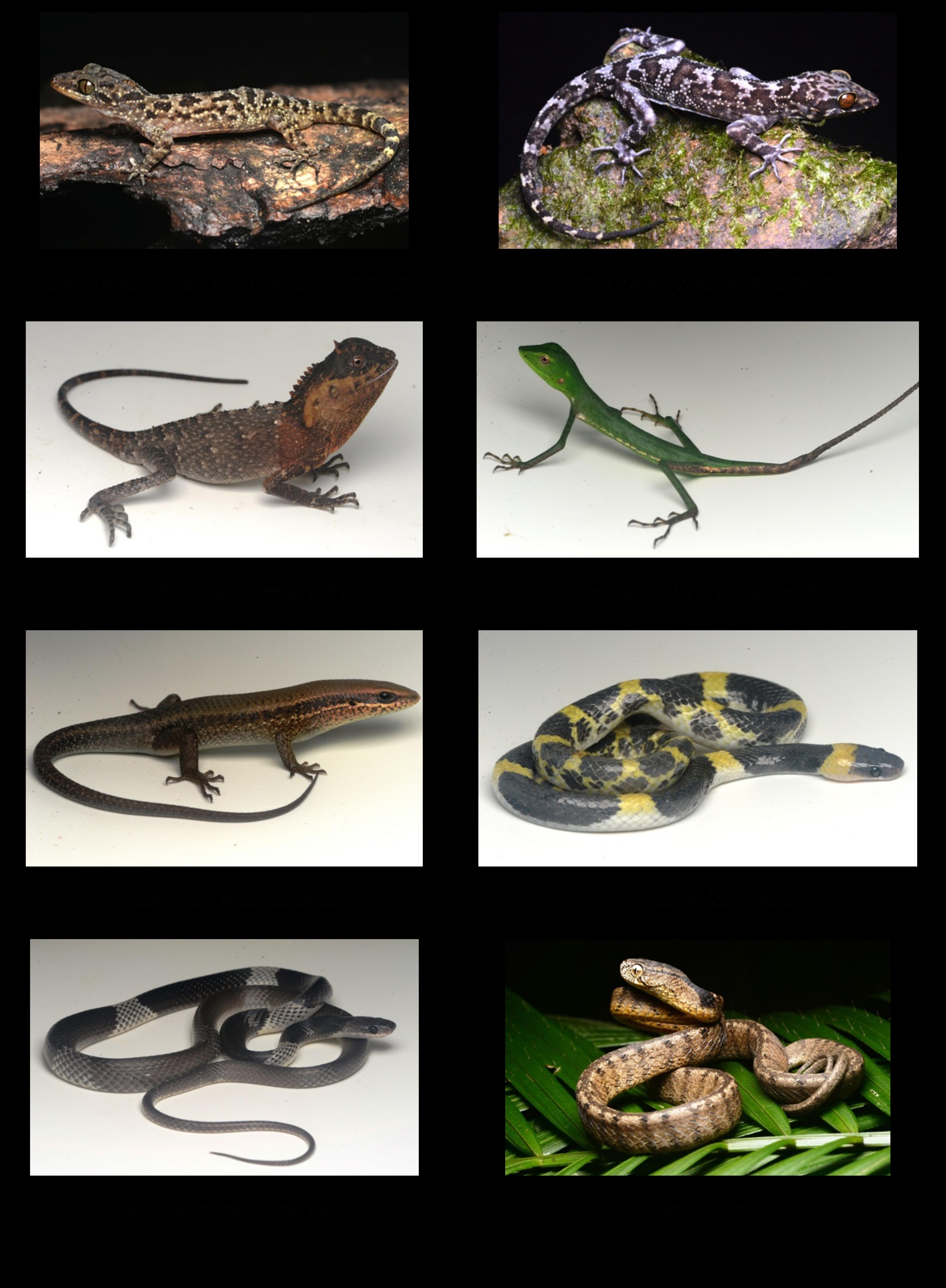 Một số loài bò sát ghi nhận tại rừng phòng hộ Sông Hinh. (Ảnh: Viện STNĐ).