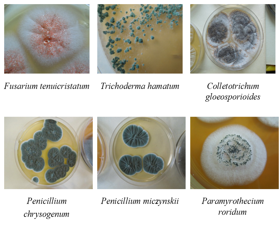 Hình ảnh một số loài vi nấm phân lập từ mẫu đất và thảm rụng của KBTTN Bình Châu - Phước Bửu. (Ảnh: Viện STNĐ).