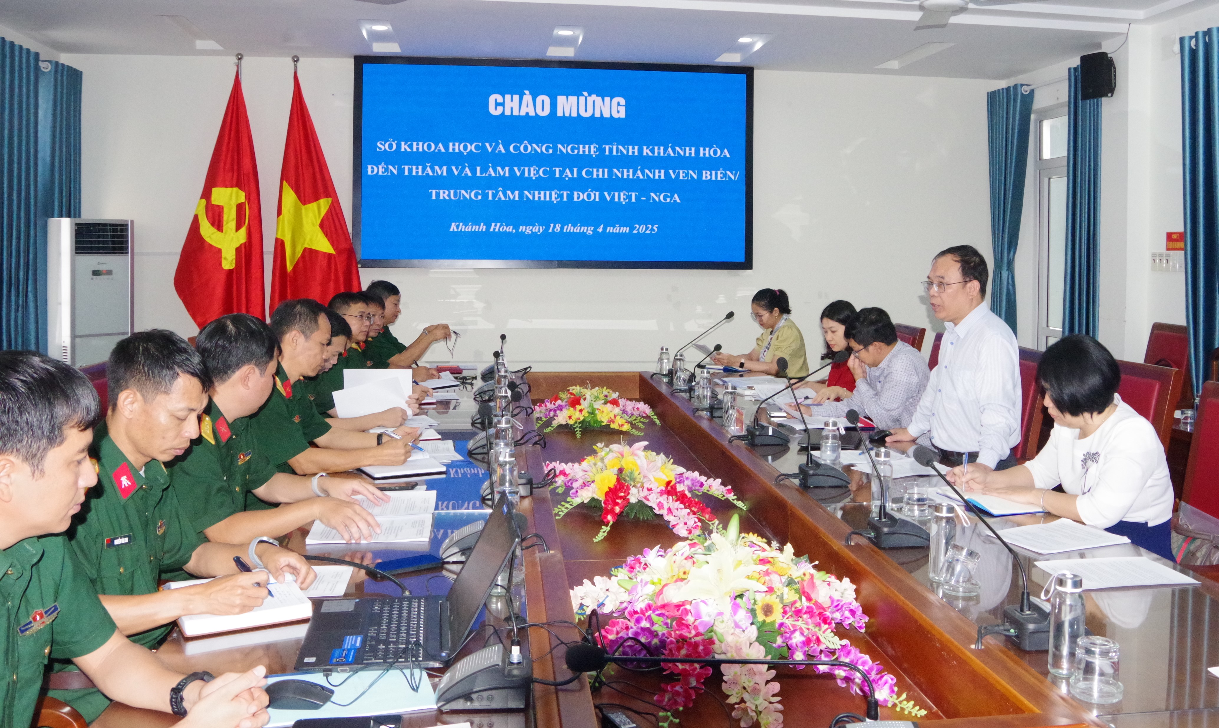 19/04/2025Ngày 18/4, tại thành phố Nha Trang, tỉnh Khánh Hòa, đồng chí Đại tá, Tiến sĩ Nguyễn Như Hưng, Giám đốc Chi nhánh Ven biển chủ trì tiếp và làm việc với đoàn công tác Sở Khoa học và Công nghệ (KH&CN) tỉnh Khánh Hòa do đồng chí Nguyễn Tấn Trung, Phó Giám đốc Sở KH&CN làm trưởng đoàn.