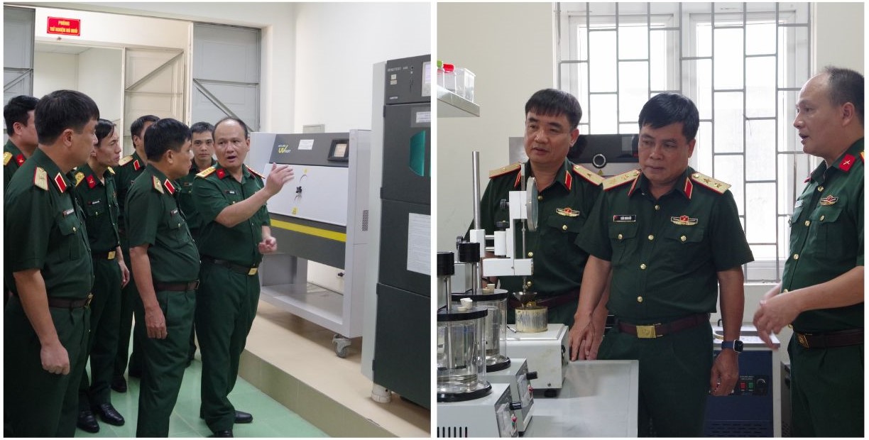 Trước đó, Đoàn công tác đã kiểm tra thực tế xưởng sản xuất và phòng thí nghiệm Viện Độ bền nhiệt đới của Trung tâm, nơi đang triển khai nghiên cứu, thử nghiệm nhiều sản phẩm kỹ thuật và dầu mỡ đặc chủng phục vụ quốc phòng. Tại đây, các đại biểu đã trực tiếp khảo sát quy trình sản xuất, kiểm nghiệm sản phẩm cũng như tìm hiểu năng lực nghiên cứu khoa học và trang thiết bị hiện có của Trung tâm.