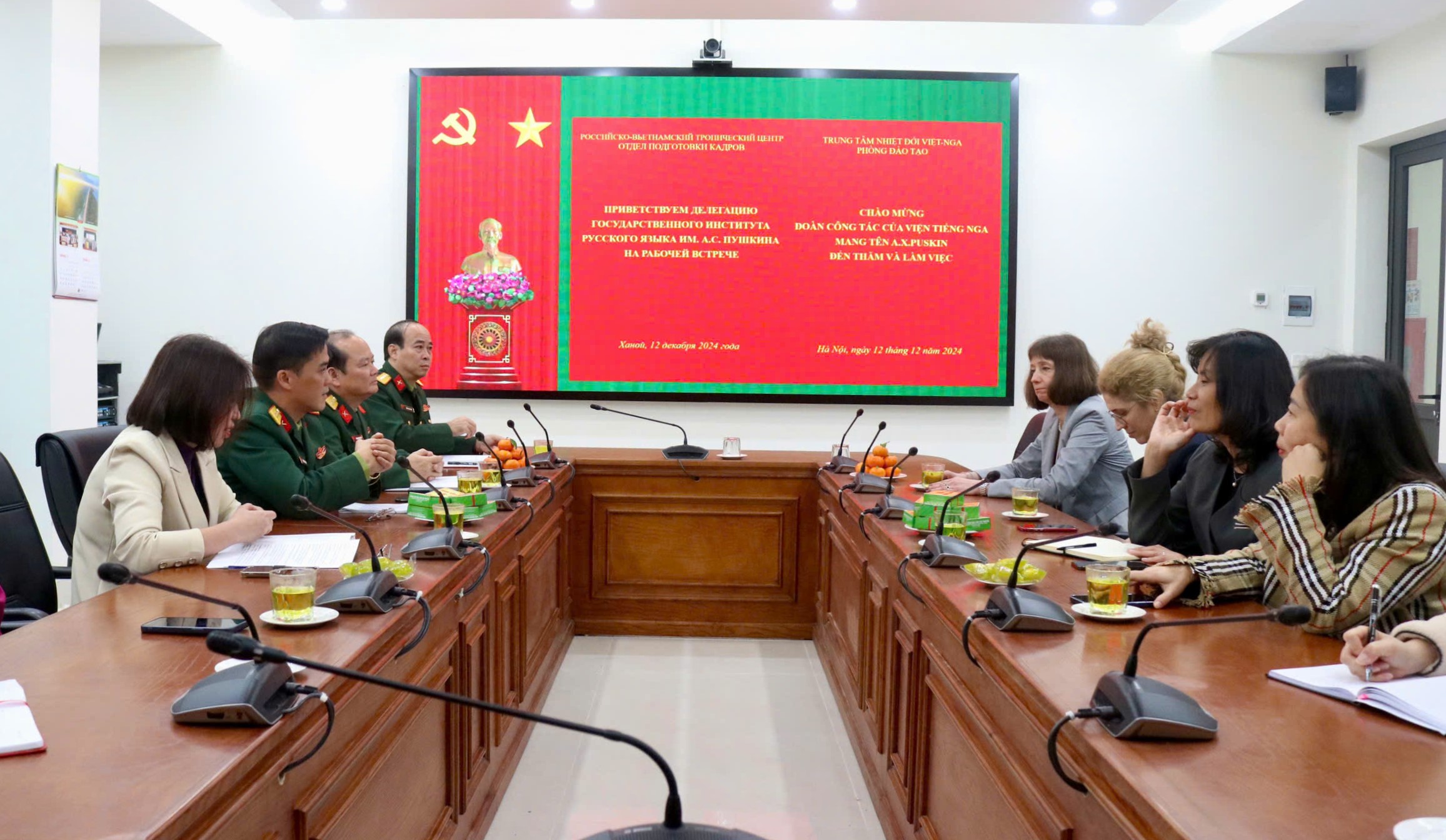 Cũng tại buổi làm việc, đồng chí Tổng Giám đốc Trung tâm bày tỏ mong muốn Viện Pushkin hợp tác sâu rộng hơn nữa trong công tác đào tạo và giảng dạy tiếng Nga, hỗ trợ Trung tâm về nguồn lực giảng dạy, cũng như nguồn tài liệu nghiên cứu, học tập tiếng Nga (từ trình độ A1-B1, B1-B2), đặc biệt là tiếp nhận và bồi dưỡng nâng cao trình độ tiếng Nga cho cán bộ khoa học và giảng viên của Trung tâm tại Viện, cũng như nhiệm vụ bồi dưỡng, nâng cao trình độ chuyên môn nghiệp vụ cho cán bộ, giảng viên của các học viện, nhà trường trong Quân đội nói chung và của Trung tâm Nhiệt đới Việt - Nga nói riêng.