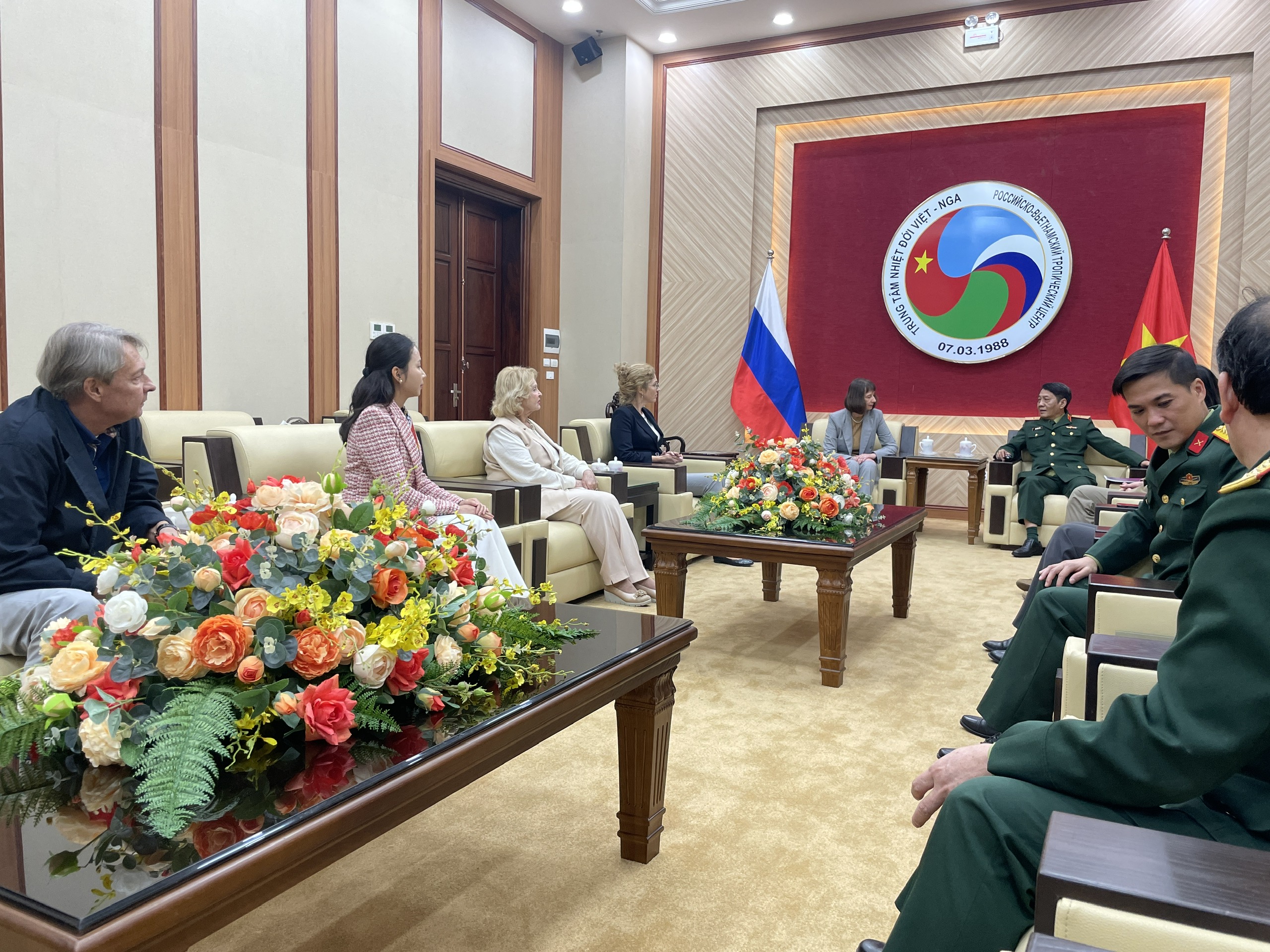 Cùng dự buổi làm việc có ngài A.N. Kuznetsov, Tổng Giám đốc phía Nga/Trung tâm Nhiệt đới Việt - Nga; Đại tá Nguyễn Phi Long, Phó Tổng Giám đốc Trung tâm; Thủ trưởng và cán bộ giáo viên Phòng Đào tạo.