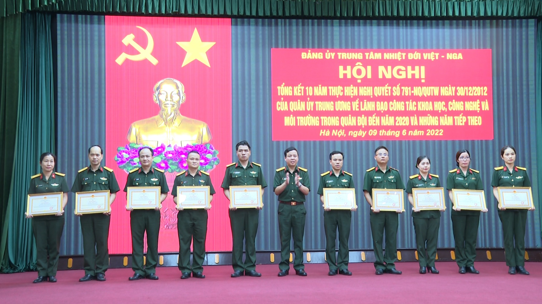 Báo cáo trung tâm và các ý kiến phát biểu tại hội nghị đều khẳng định, giai đoạn 2013 - 2021, Đảng ủy Trung tâm đã lãnh đạo, chỉ đạo triển khai tổ chức thực hiện nghiêm túc, hiệu quả Nghị quyết 791-NQ/QUTW. Nhận thức, trách nhiệm của cán bộ, nhân viên đối với công tác khoa học, công nghệ và môi trường được nâng lên. Ngoài việc thực hiện Chương trình nghiên cứu khoa học và công nghệ (KH&CN) hỗn hợp Việt - Nga do Uỷ ban phối hợp về Trung tâm Nhiệt đới Việt - Nga phê duyệt trên cơ sở Hiệp định liên chính phủ về Trung tâm Nhiệt đới Việt - Nga, Trung tâm đã chủ trì nhiều đề tài, nhiệm vụ khoa học, công nghệ và môi trường các cấp của riêng phía Việt Nam, gồm: 15 đề tài, nhiệm vụ KH&CN cấp quốc gia, 01 Chương trình KH&CN cấp Bộ Quốc phòng, 41 đề tài, nhiệm vụ KH&CN cấp bộ, cấp tỉnh, 17 nhiệm vụ bảo vệ môi trường, ứng phó với biến đổi khí hậu và trên 200 đề tài cấp cơ sở.
