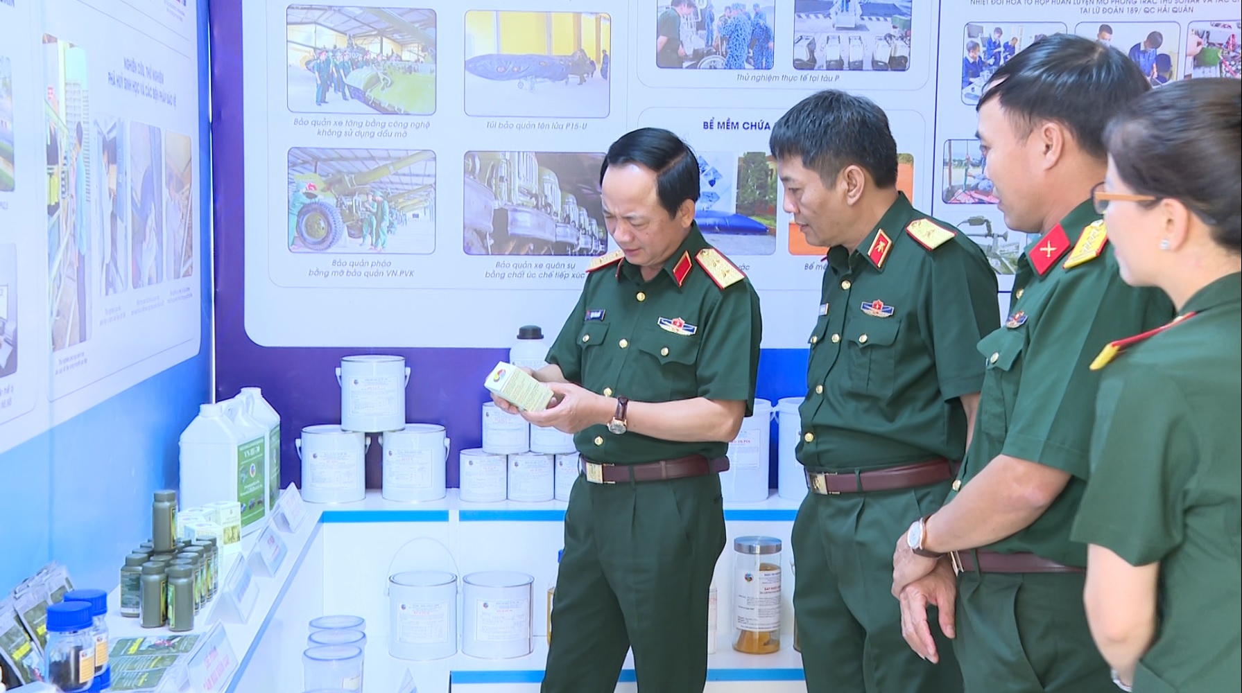 Trung tướng Trịnh Văn Quyết, Phó Chủ nhiệm TCCT thăm quan khu trưng bày sản phẩm Khoa học và công nghệ của Trung tâm.