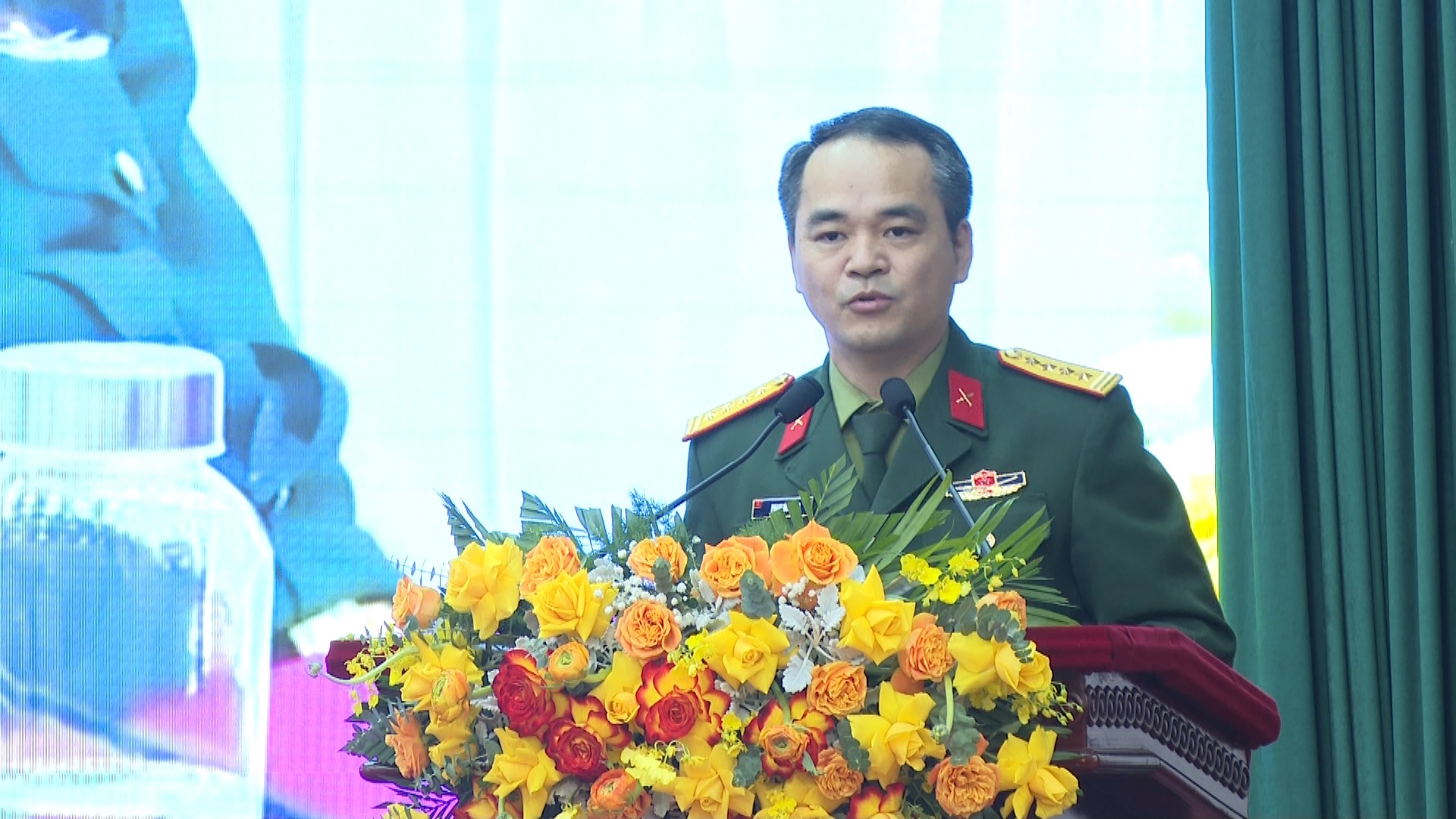Đại tá Phạm Duy Nam, Phó Tổng giám đốc Trung tâm phát biểu tại Hội nghị.