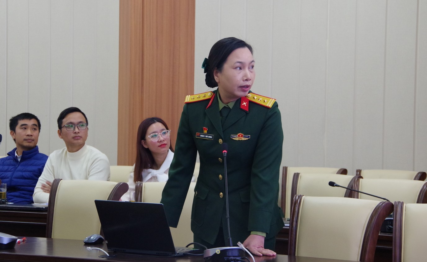 Thượng tá, TS. Hoàng Thị Thùy Dương báo cáo tại hội nghị.