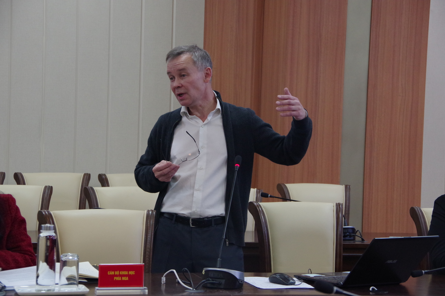 Đại tá, TS. Phạm Duy Nam, Phó Tổng Giám đốc TTNĐ Việt - Nga chủ trì Hội thảo. Cùng dự có TSKH. Andrey Nikolaievich Kuznetsov, Tổng Giám đốc phía Nga TTNĐ Việt - Nga; cán bộ khoa học phía Nga; đại diện cơ quan quản lý khoa học; lãnh đạo, chỉ huy và cán bộ khoa học Chi nhánh Phía Nam, Chi nhánh Ven biển và các đơn vị nghiên cứu khoa học tại Cơ sở chính.