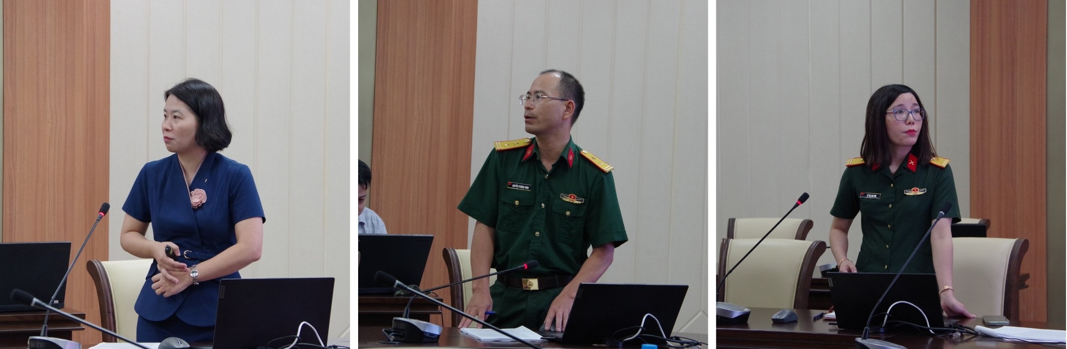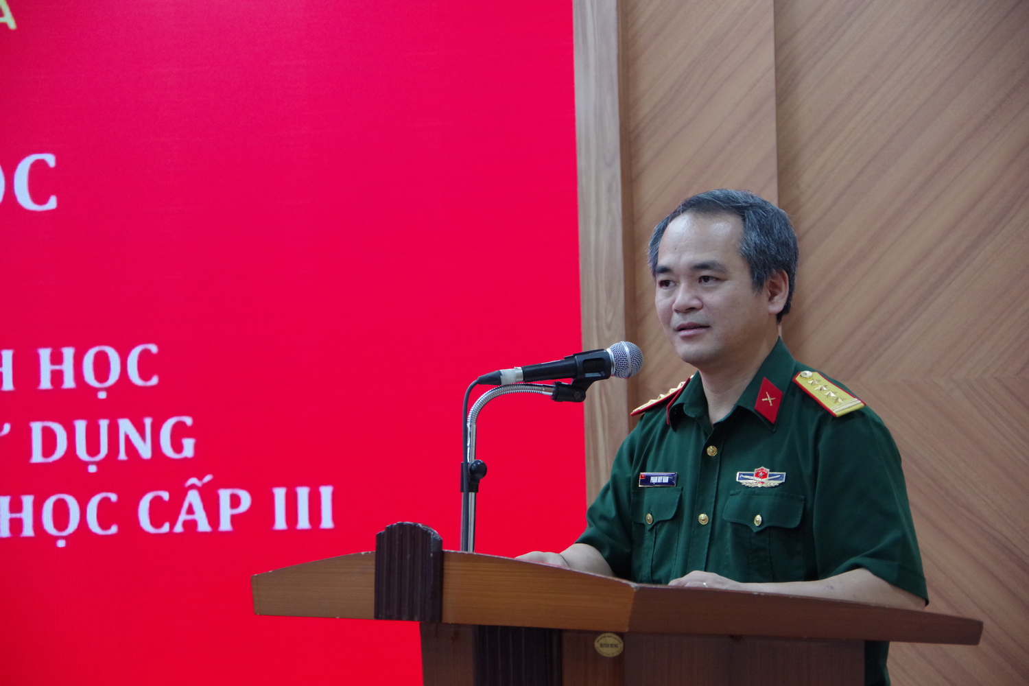 Đại tá, TS. Phạm Duy Nam, Phó Tổng Giám đốc Trung tâm chủ trì Hội thảo. Tham dự Hội thảo có Đại tá, PGS. TS. BS. Lê Văn Đông, Phó Cục trưởng Cục Quân y; cùng đông đảo cán bộ, nhà khoa học và đại biểu quan tâm đến lĩnh vực nghiên cứu, ứng dụng và quản lý ATSH.