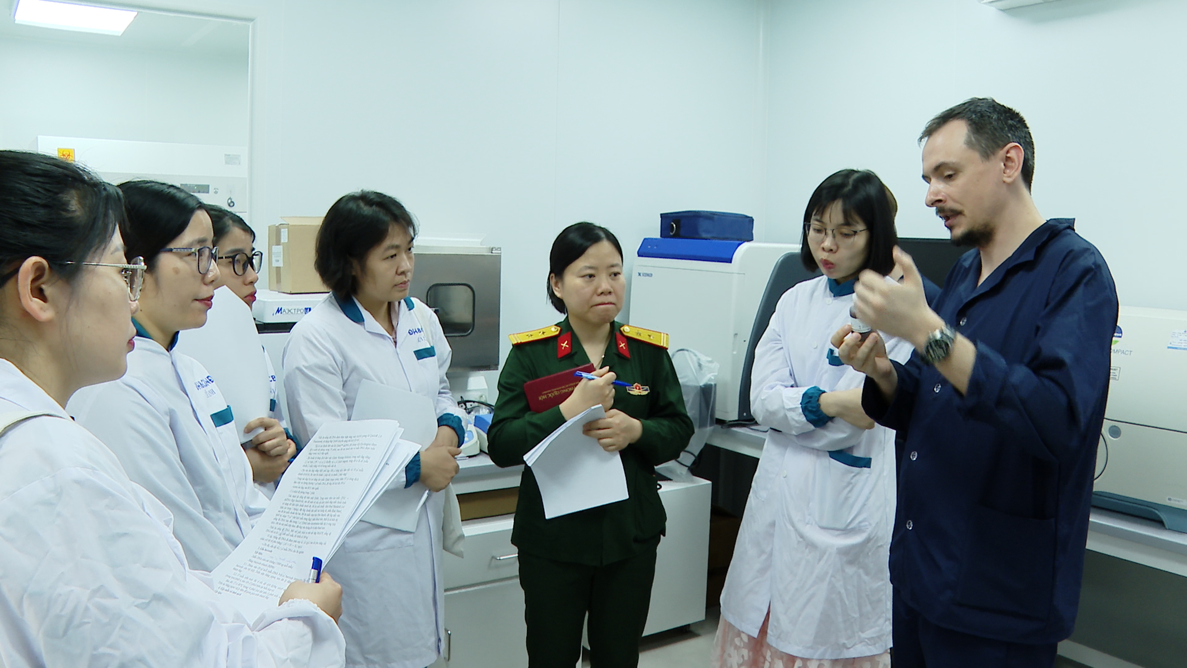 Tiếp theo của hội thảo là phần thực hành chuyên sâu được tổ chức ngay tại phòng thí nghiệm của Viện Y sinh nhiệt đới. Các học viên đã trực tiếp tiếp cận quy trình thực hiện giải trình tự hiệu năng cao bằng công nghệ Nanopore, từ khâu chuẩn bị mẫu vật liệu sinh học, xử lý các chủng vi sinh vật đến các bước giải trình tự và phân tích dữ liệu.
