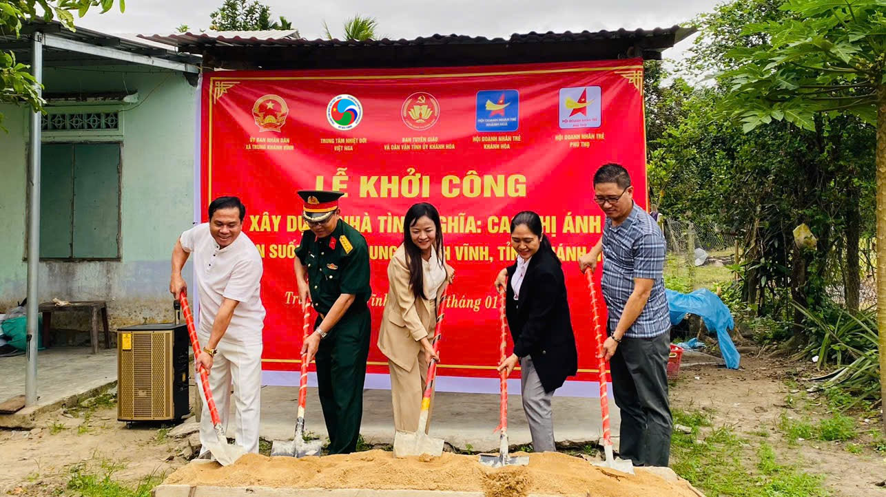 07/01/2026Chiều ngày 05/01, Chi nhánh Ven biển/ Trung tâm Nhiệt đới Việt - Nga phối hợp cùng Ban Tuyên giáo và Dân vận Tỉnh ủy Khánh Hòa, Hội Doanh nhân trẻ Khánh Hòa, Hội Doanh nhân trẻ Phú Thọ và UBND xã Trung Khánh Vĩnh tổ chức Lễ khởi công xây dựng nhà tình nghĩa cho hộ bà Cao Thị Ánh, người đồng bào dân tộc thiểu số ở thôn Suối Cá (xã Trung Khánh Vĩnh).