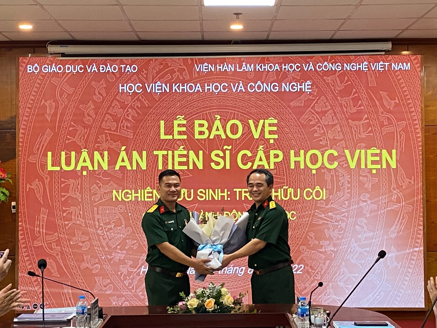 Tham dự buổi lễ có Tiến sĩ Trần Thị Phương Anh, Phó Giám đốc Học viện Khoa học và Công nghệ; Đại tá, Tiến sĩ Phạm Duy Nam, Phó Tổng Giám đốc Trung tâm Nhiệt đới Việt - Nga; Đại tá, Phó Giáo sư, Tiến sĩ Nguyễn Đăng Hội, Viện trưởng Viện Sinh thái nhiệt đới; thầy hướng dẫn cùng đồng nghiệp và người thân của nghiên cứu sinh.