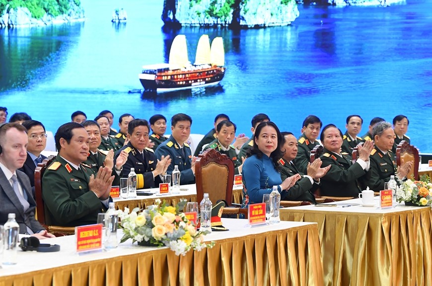 Đồng chí Võ Thị Ánh Xuân, Ủy viên Trung ương Đảng, Phó Chủ tịch Nước Cộng hòa xã hội chủ nghĩa Việt Nam dự, trao huân chương và phát biểu ý kiến.