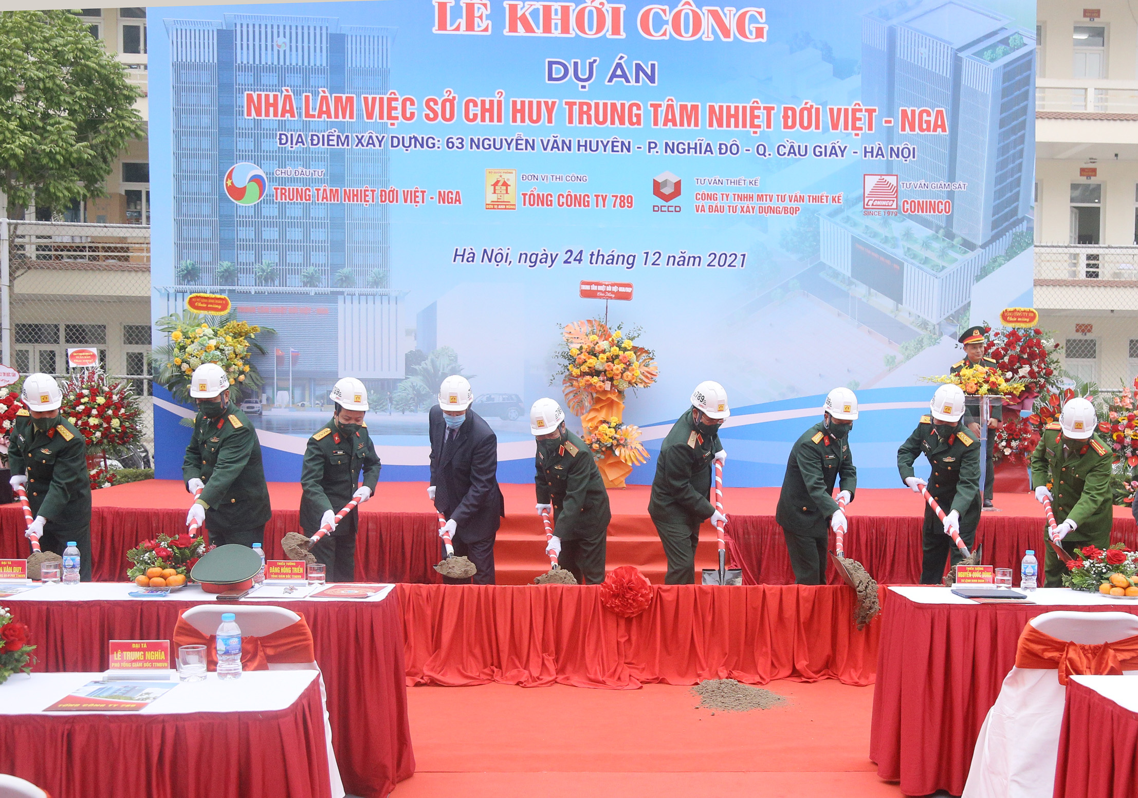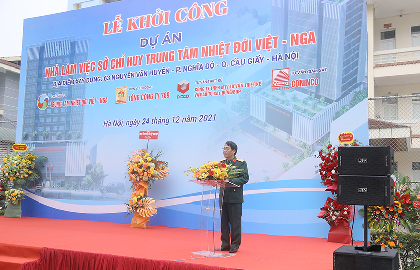 27/12/2021Chiều ngày 24/12/2021, tại Cơ sở chính, diễn ra Lễ Khởi công công trình Nhà làm việc - Sở chỉ huy Trung tâm Nhiệt đới Việt - Nga. Thiếu tướng Đặng Hồng Triển, Tổng Giám đốc Trung tâm chủ trì buổi lễ. Tham dự buổi lễ có Đồng chí Thiếu tướng Nguyễn Quốc Dũng, Tư lệnh Binh đoàn 11, cùng đại diện các đơn vị thi công, đơn vị tư vấn giám sát, đơn vị thiết kế, đại diện lãnh đạo chính quyền quận Cầu Giấy, phường Nghĩa Đô và đại diện chỉ huy các cơ quan đơn vị tại Cơ sở chính.