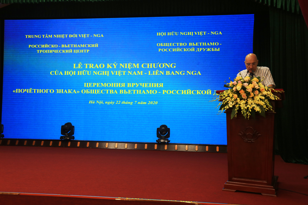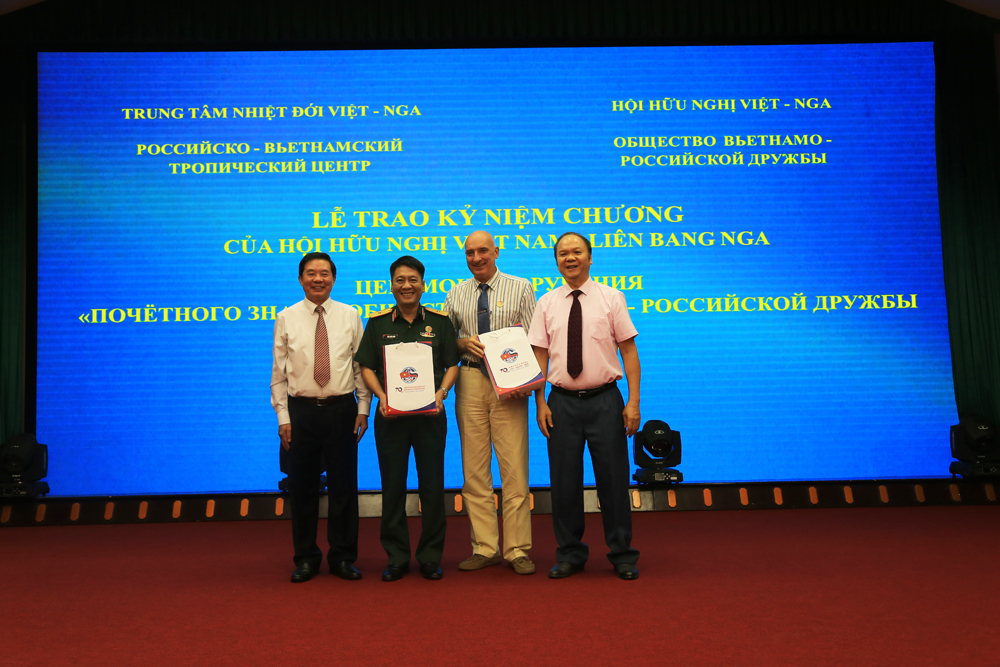 Thay mặt lãnh đạo Ban chấp hành Hội Hữu nghị Việt Nam – Liên bang Nga, Phó chủ tịch Trịnh Quốc Khánh và Bùi Đình Dĩnh đã trao tặng Kỷ niệm chương Hội Hữu nghị Việt Nam – Liên bang Nga cho 25 cá nhân đã và đang công tác tại Trung tâm Nhiệt đới Việt – Nga vì có nhiều đóng góp tíc cực trong việc Xây dựng và phát triển Hội Hữu nghị Việt Nam – Liên bang Nga.