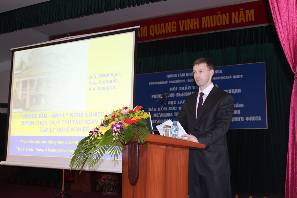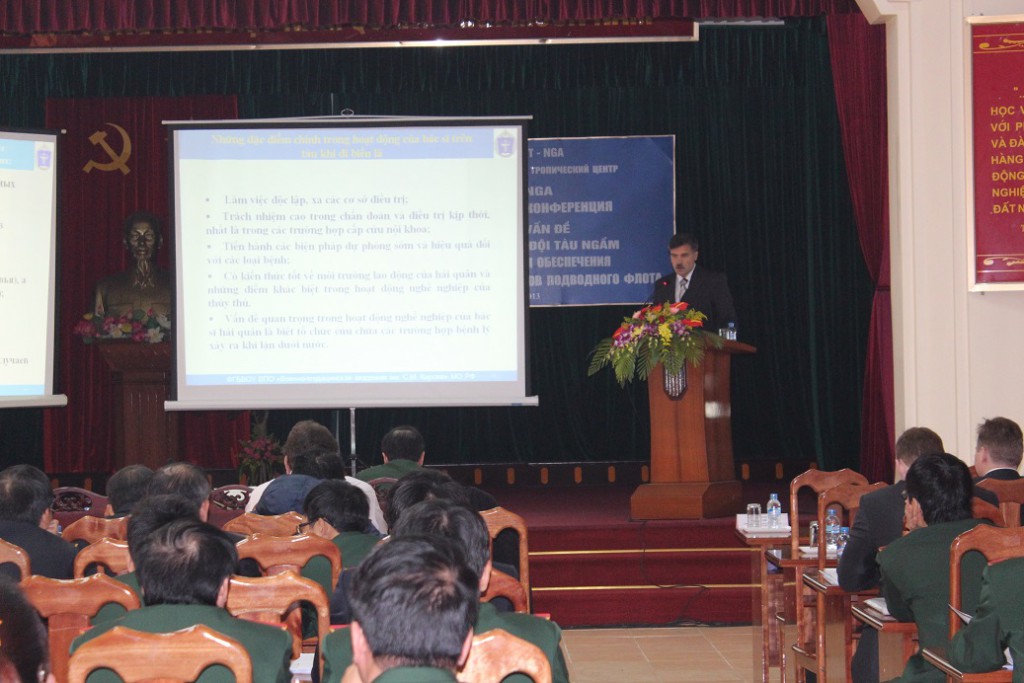 06/12/2013Ngày 2 tháng 12 năm 2013, Trung tâm Nhiệt đới Việt – Nga phối hợp với Cục Quân y, Học viện Quân y, Quân chủng Hải quân tổ chức thực hiện Hội thảo “Y học lao động và bảo đảm sức khoẻ bộ đội tàu ngầm”. Tại Hội thảo có 13 chuyên đề và 1 báo cáo, tất cả đều do các chuyên gia đến từ Học viện Quân y mang tên S.M. Kirov/ BQP LB Nga chuẩn bị và trình bày. Hội thảo kéo dài đến hết ngày 5-12-2013.