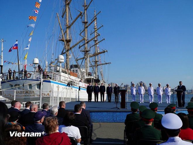 Lễ bàn giao tàu nghiên cứu khoa học “Giáo sư Gagarinsky.” (Ảnh: Vietnam+)
