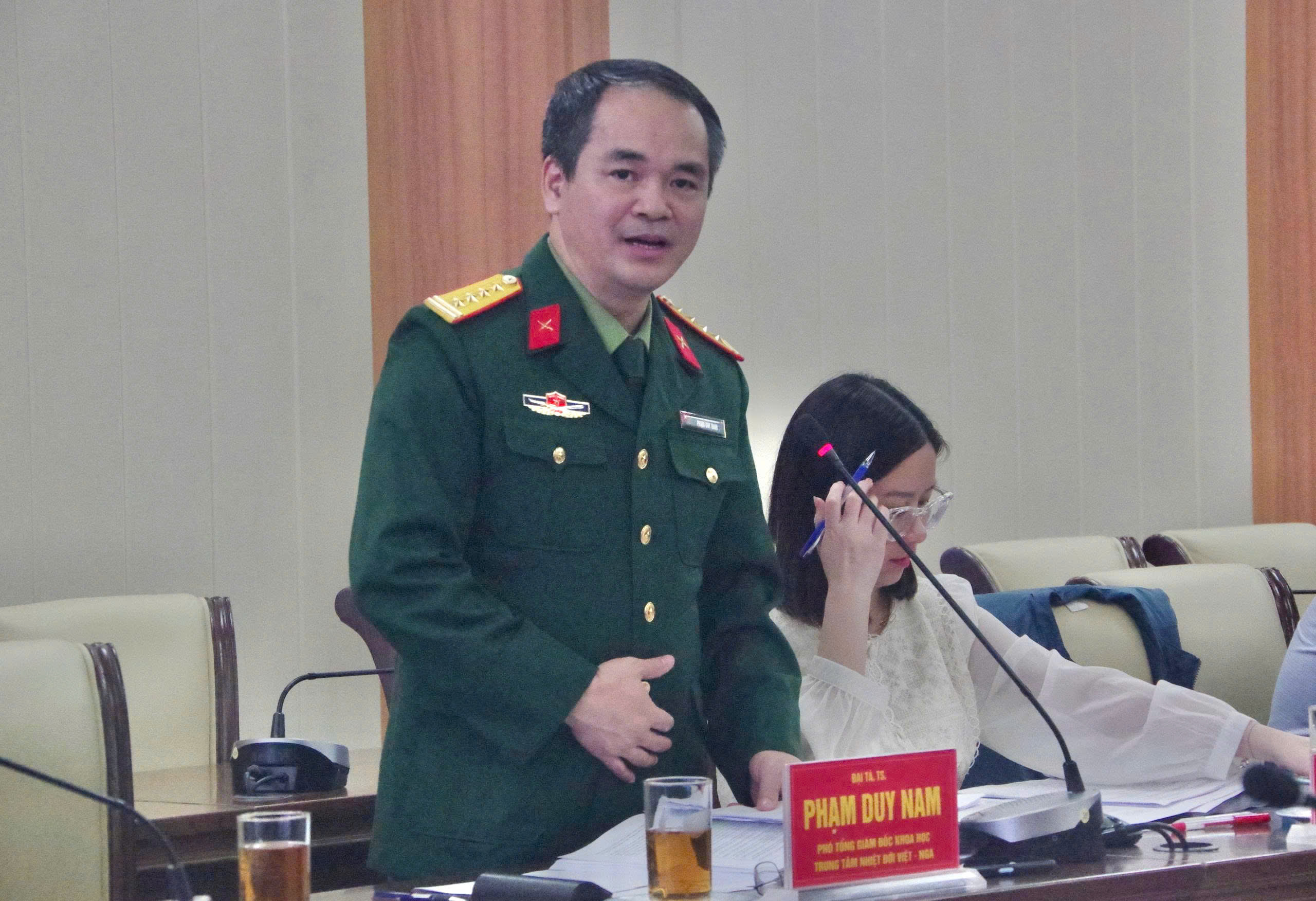 Đại tá, TS. Phạm Duy Nam, Phó Tổng Giám đốc Trung tâm, Chủ tịch Hội đồng chủ trì phiên họp. Tham gia phiên họp, có các thành viên Hội đồng, đại diện cơ quan quản lý khoa học, đơn vị chủ trì và nhóm thực hiện nhiệm vụ.