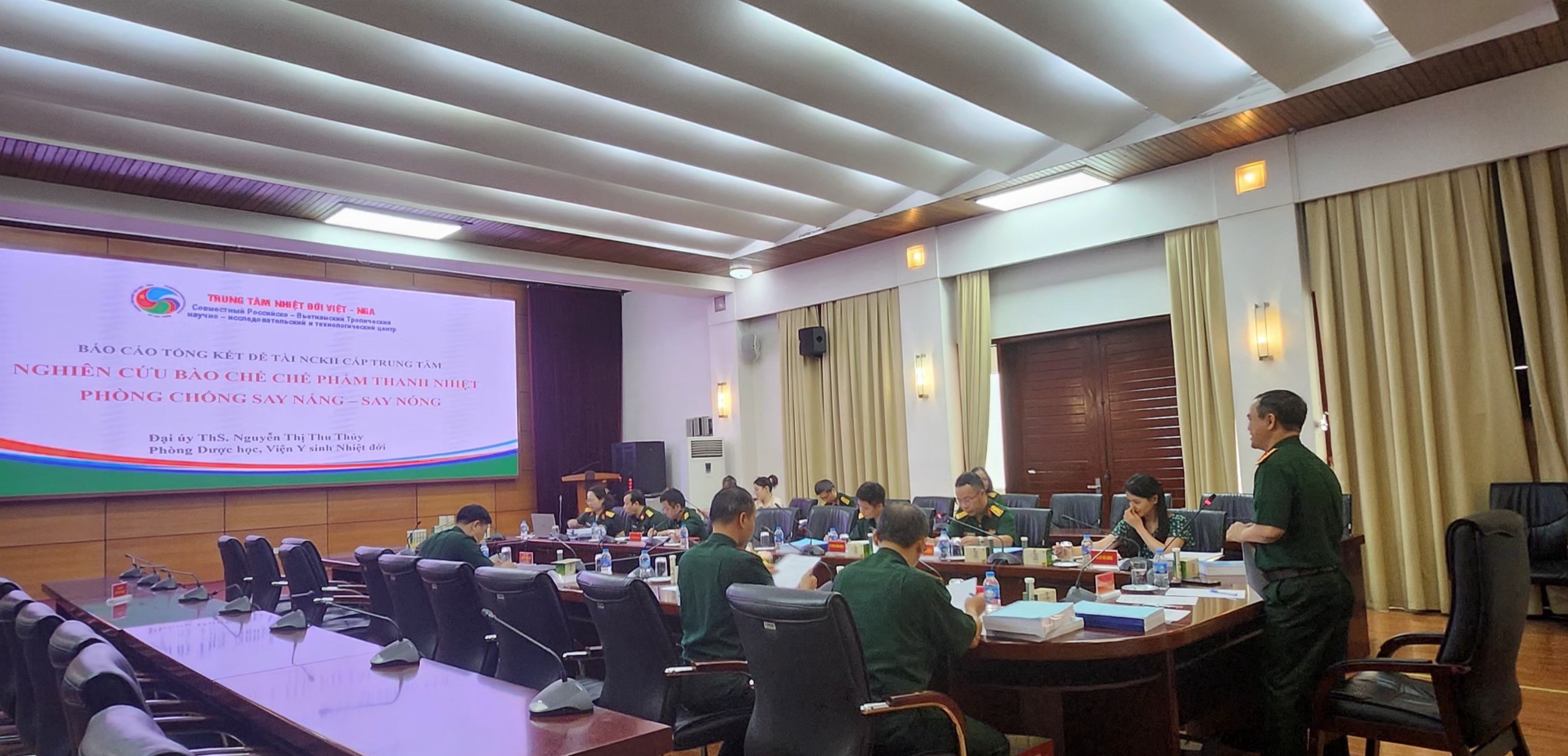09/08/2024Chiều ngày 02 tháng 8, tại Hà Nội, Trung tâm Nhiệt đới Việt - Nga tổ chức họp Hội đồng KH&CN tư vấn đánh giá, nghiệm thu kết quả thực hiện đề tài cấp Trung tâm: “Nghiên cứu bào chế chế phẩm thanh nhiệt phòng chống say nắng - say nóng” do Viện Y sinh Nhiệt đới là đơn vị chủ trì thực hiện, chủ nhiệm đề tài là đồng chí Đại úy, ThS. Nguyễn Thị Thu Thủy.