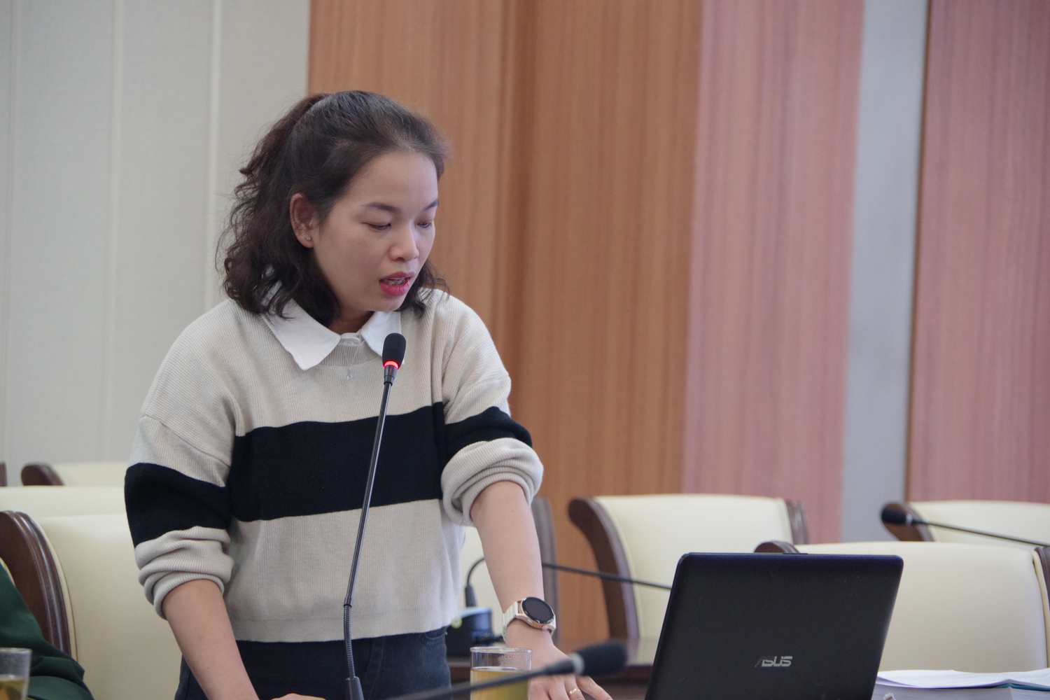 Tại buổi làm việc, thay mặt nhóm nghiên cứu, TS. Võ Thị Lệ Quyên báo cáo trước Hội đồng những kết quả mà nhóm đã đạt được. Cụ thể: