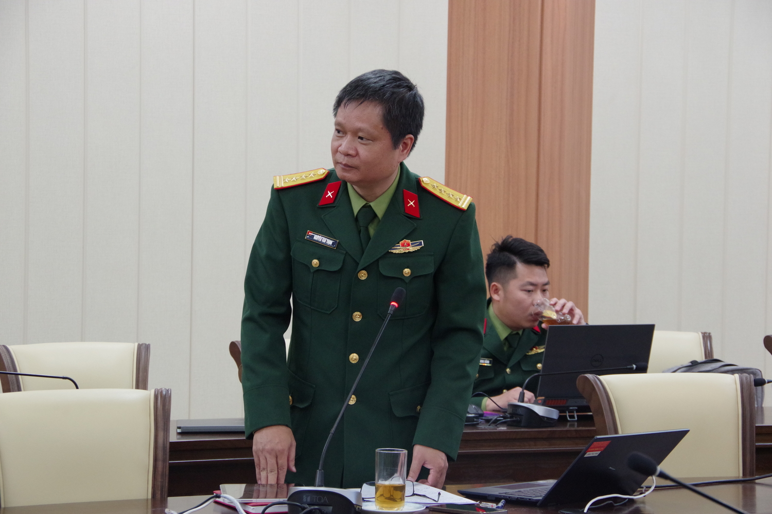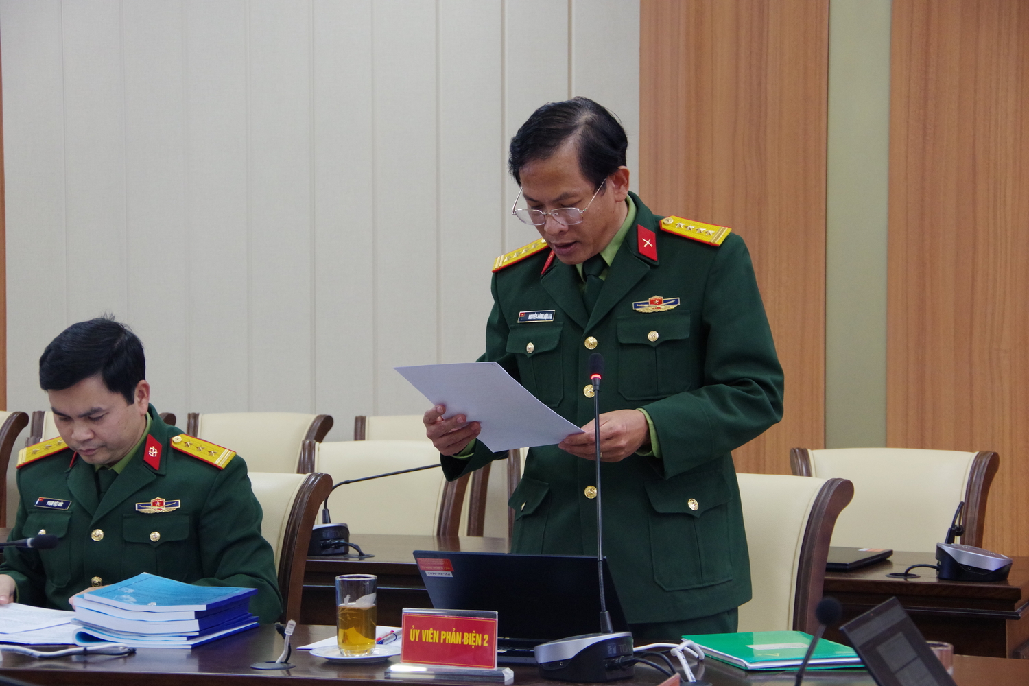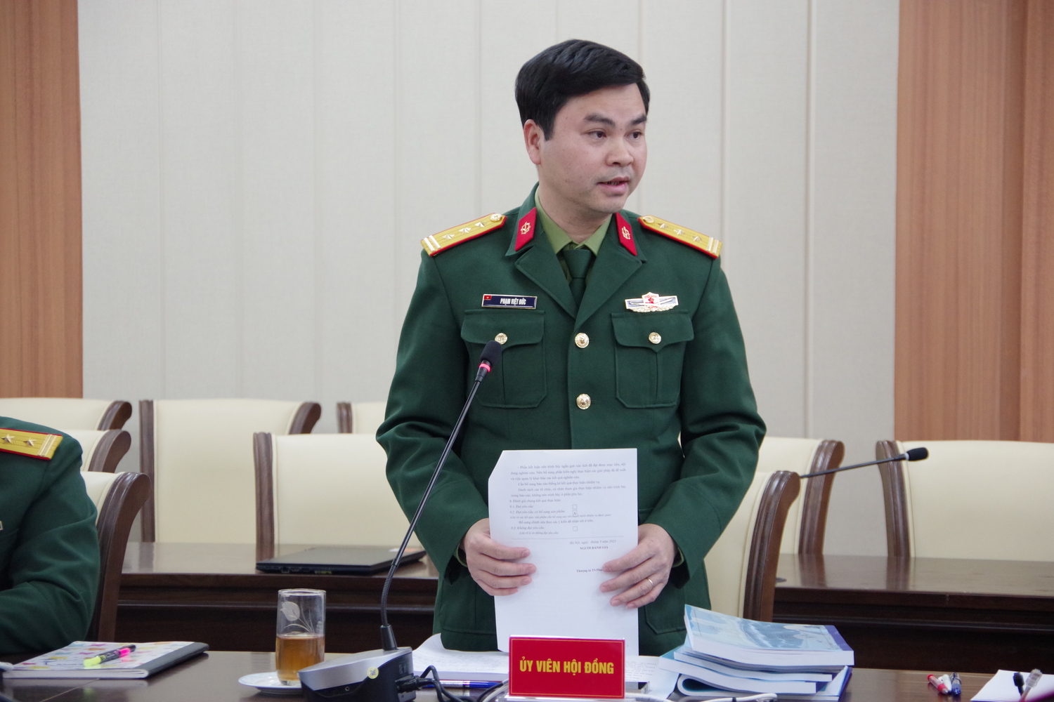 Đại tá, TS. Nguyễn Văn Thịnh báo cáo kết quả nhiệm vụ trước Hội đồng.
