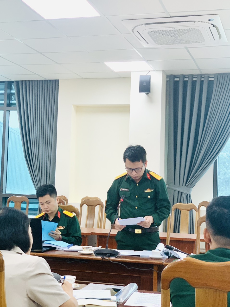 Đồng chí Thượng tá, TS. Hà Hữu Sơn, Phụ trách Viện Độ bền Nhiệt đới, Chủ tịch Hội đồng chủ trì phiên họp; tham dự phiên họp có các thành viên Hội đồng, đại diện cơ quan quản lý khoa học, đơn vị chủ trì và nhóm thực hiện nhiệm vụ.
