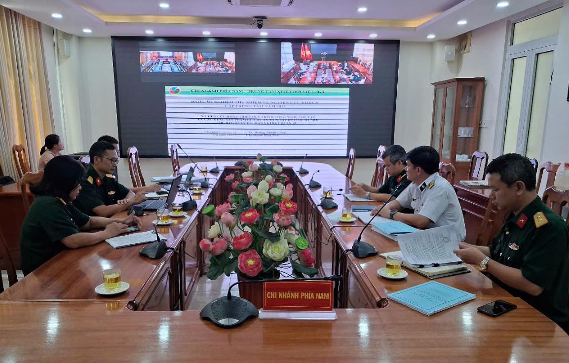 13/03/2025Chiều ngày 12 tháng 3, tại Hà Nội, Trung tâm Nhiệt đới Việt - Nga tổ chức họp Hội đồng KH&CN tư vấn, đánh giá, nghiệm thu kết quả của nhiệm vụ cấp Trung tâm “Nghiên cứu hoàn thiện quy trình công nghệ chế tạo và ứng dụng sản phẩm ức chế ăn mòn bay hơi thế hệ mới để bảo quản dài hạn VKTBKT quân sự”. Nhiệm vụ do Chi nhánh Phía Nam là đơn vị chủ trì; đồng chí Thiếu tá, TS. Hoàng Thanh Long làm chủ nhiệm. Buổi nghiệm thu được tổ chức theo hình thức trực tiếp và trực tuyến với Chi nhánh Phía Nam.