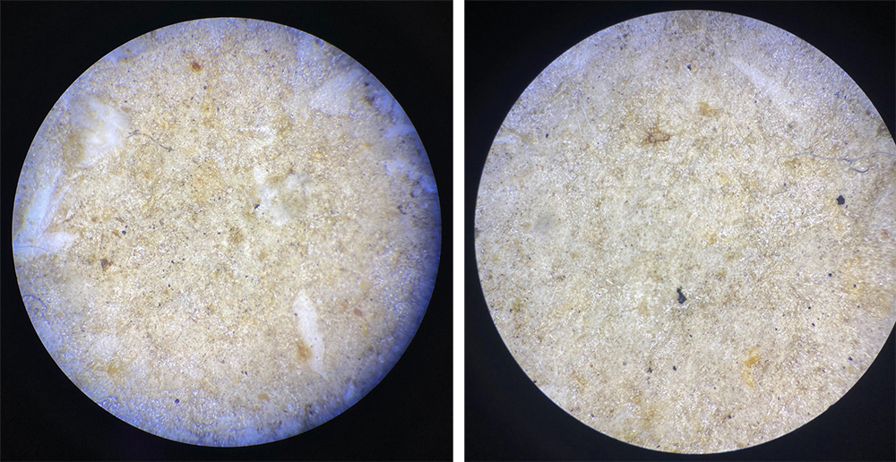 Hình 3: Vi nhựa có trong mẫu nước tại Cần Giờ: (a) Vi nhựa dạng sợi; (b) Vi nhựa dạng mảnh.