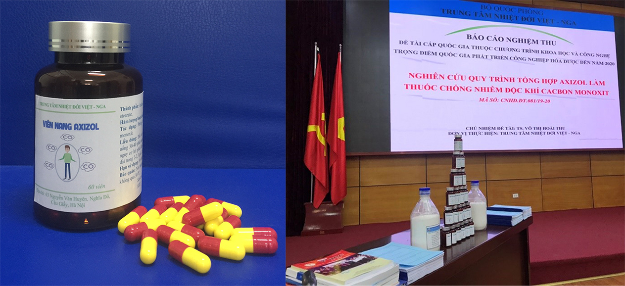Với mục đích chủ động được nguồn cung cấp thuốc axizol trong nước phục vụ nhu cầu dự phòng trong các trường hợp khẩn cấp liên quan tới hỏa hoạn nhóm nghiên cứu của TTNĐ Việt-Nga thực hiện đề tài nghiên cứu làm chủ công nghệ sản xuất hoạt chất axizol cũng như bào chế thuốc axizol ở dạng viên nang cứng trong khuôn khổ Chương trình nghiên cứu KH&CN trọng điểm quốc gia phát triển công nghiệp hóa dược .