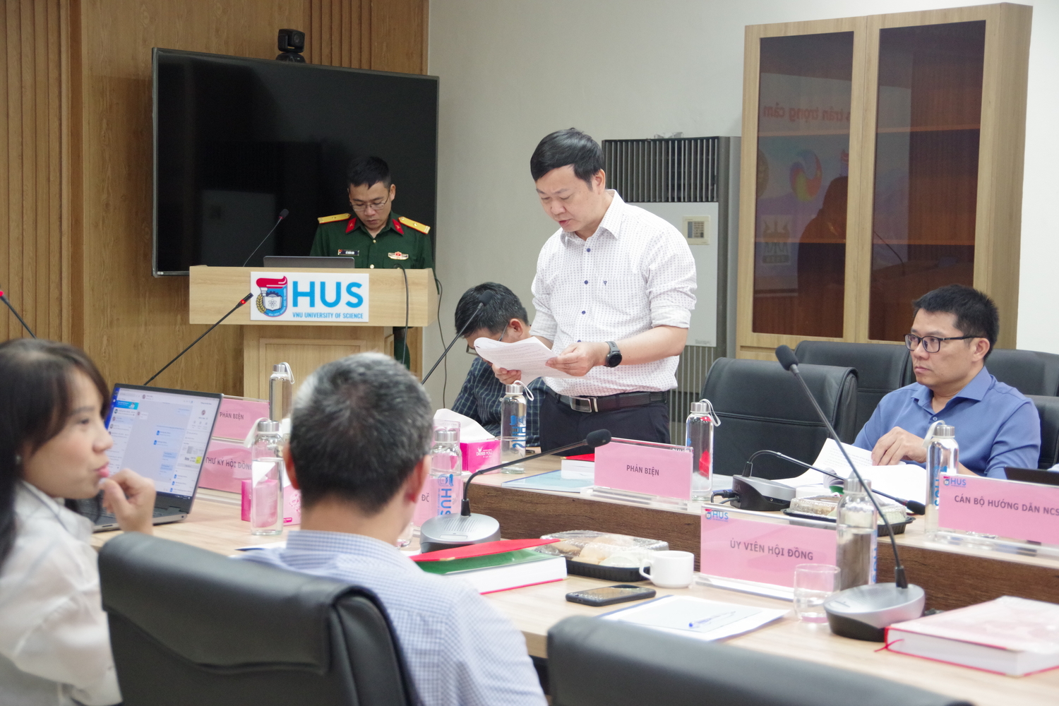 Tham dự buổi lễ, về phía cơ sở đào tạo, có sự hiện diện của đại diện lãnh đạo nhà trường và các thành viên Hội đồng đánh giá luận án. Về phía cơ quan chủ quản, có Đại tá, TS. Phạm Duy Nam, Phó Tổng Giám đốc Trung tâm, cùng các nhà khoa học, đồng nghiệp, bạn bè và người thân của NCS.
