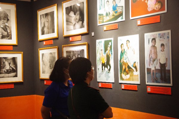 Tham quan khu trưng bày ảnh tư liệu tại Bảo tàng chứng tích Chiến tranh