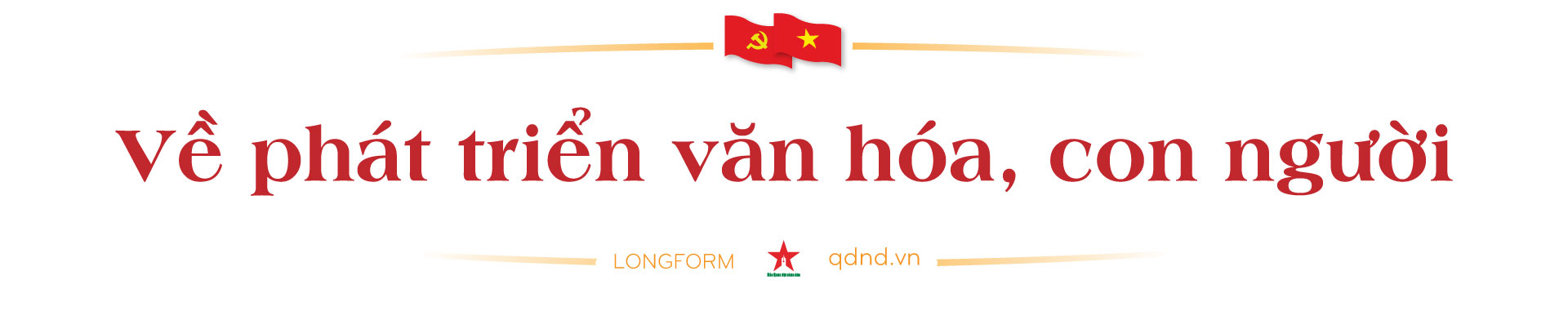 Xuất phát từ luận điểm nổi tiếng của Chủ tịch Hồ Chí Minh “Văn hóa phải soi đường cho quốc dân đi”, Tổng Bí thư Nguyễn Phú Trọng đã phân tích, chỉ ra quá trình phát triển, hoàn thiện nhận thức của Đảng ta về văn hóa và con người, trong đó, văn hóa được coi là một trong 4 trụ cột chính sách, là nền tảng tinh thần, đồng thời cũng là nguồn lực nội sinh, động lực phát triển kinh tế - xã hội. Từ đó, đồng chí Tổng Bí thư đi đến nhận định: “Đảng ta khẳng định: Trọng tâm xây dựng và phát triển văn hóa là xây dựng con người có nhân cách và xây dựng môi trường văn hóa lành mạnh”.