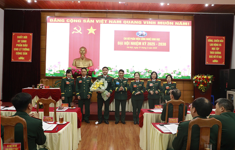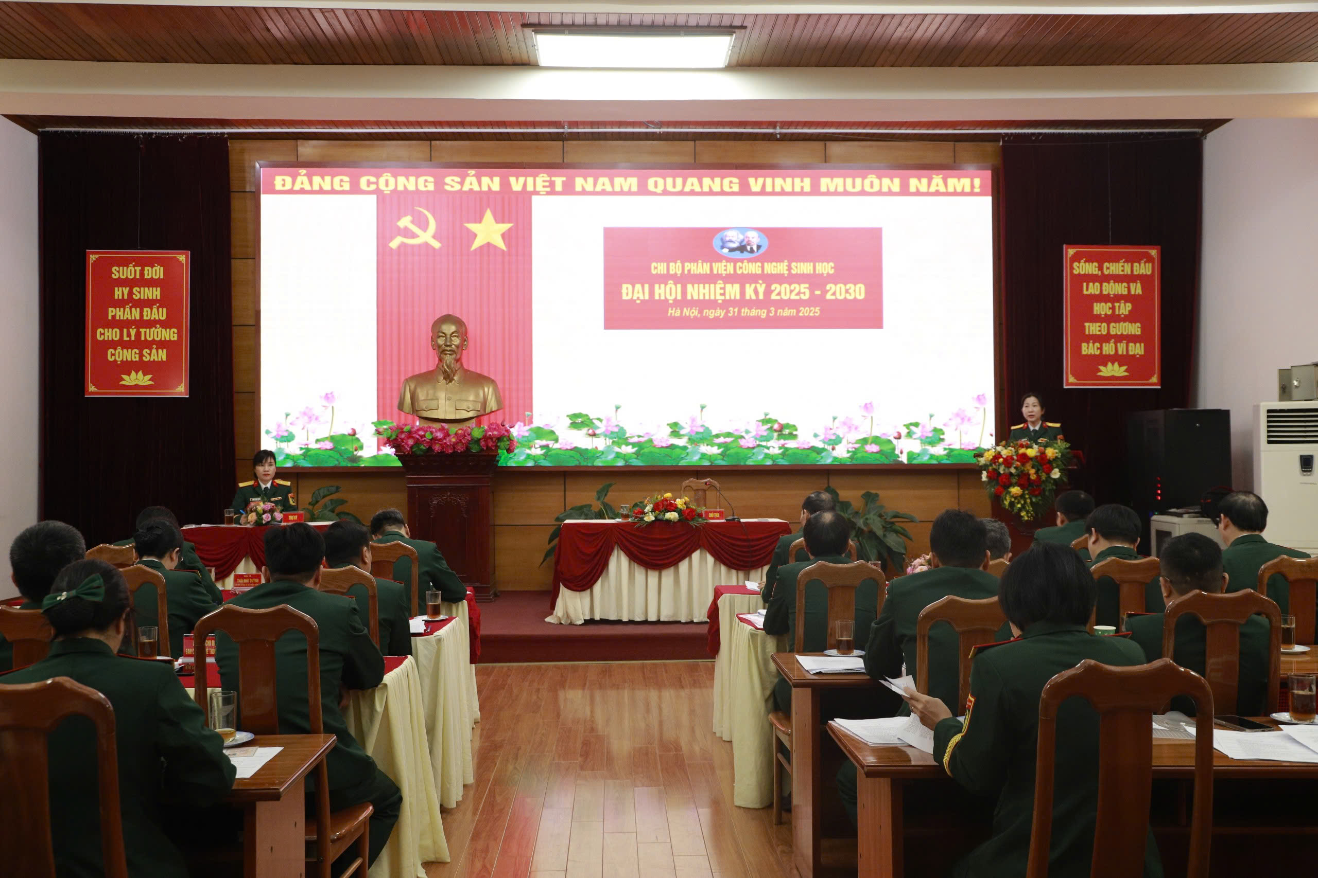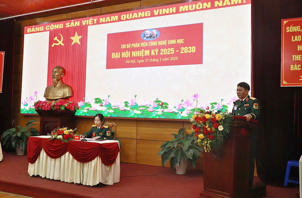Phát biểu chỉ đạo Đại hội, Thiếu tướng Đặng Hồng Triển, Tổng Giám đốc Trung tâm biểu dương và chúc mừng những thành tích, kết quả mà Chi bộ Phân viện Công nghệ sinh học đã đạt được trong nhiệm kỳ qua. Trong nhiệm kỳ 2025 - 2030, đồng chí Tổng Giám đốc yêu cầu Chi bộ Phân viện Công nghệ sinh học lãnh đạo quyết liệt và đẩy mạnh hoạt động nghiên cứu khoa học, tiếp tục đột phá trong ứng dụng, chuyển giao công nghệ, tập trung vào các đề tài có tính ứng dụng cao phục vụ quân sự, quốc phòng, kinh tế xã hội và dân sinh, phát triển không chỉ là sản phẩm, chế phẩm mà cả công nghệ. Đổi mới phương pháp nghiên cứu, phát huy lợi thế của Trung tâm là đơn vị hợp tác với Liên bang Nga chủ động nghiên cứu, tiếp nhận các công nghệ tiên tiến của nước bạn, đặc biệt là lĩnh vực công nghệ sinh học. Đối với các sản phẩm đã nghiệm thu, tích cực hoàn thiện hồ sơ pháp lý (viên xử lý nước DG-19, sản phẩm Axizol chống nhiễm độc khí CO, chế phẩm xua đuổi côn trùng PMD...); mạnh dạn đề xuất và phấn đấu đưa thêm 3-5 sản phẩm, công nghệ mới được phê duyệt đưa vào trang bị hoặc ứng dụng thực tế. Nâng cao năng lực lãnh đạo của chỉ huy, quản lý, đơn vị đoàn kết, quyết tâm hoàn thành xuất sắc nhiệm vụ được giao.