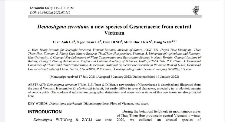 Phát hiện mới được công bố trên tạp chí chuyên ngành Taiwania 67.