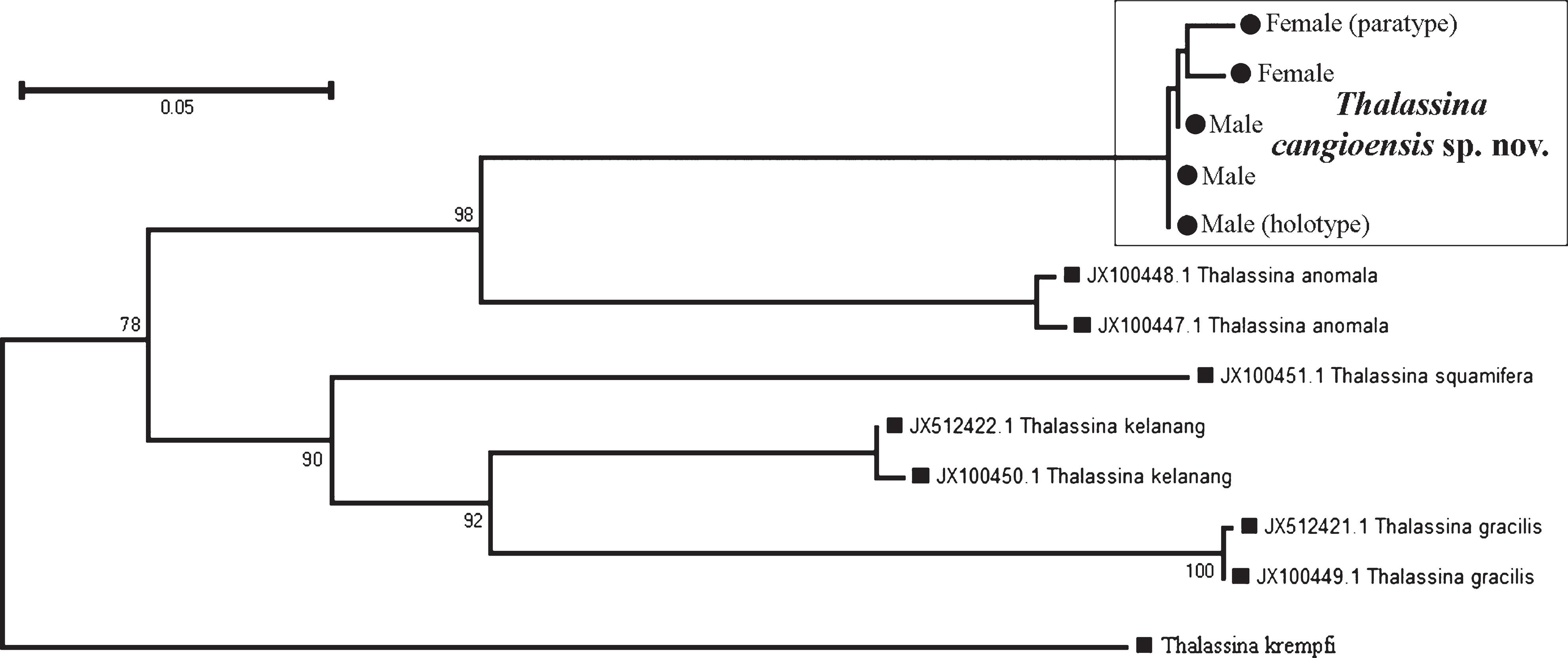 Hình 9: Mối quan hệ phát sinh loài Thalassina cangioensis với các loài khác trong giống Thalassina.