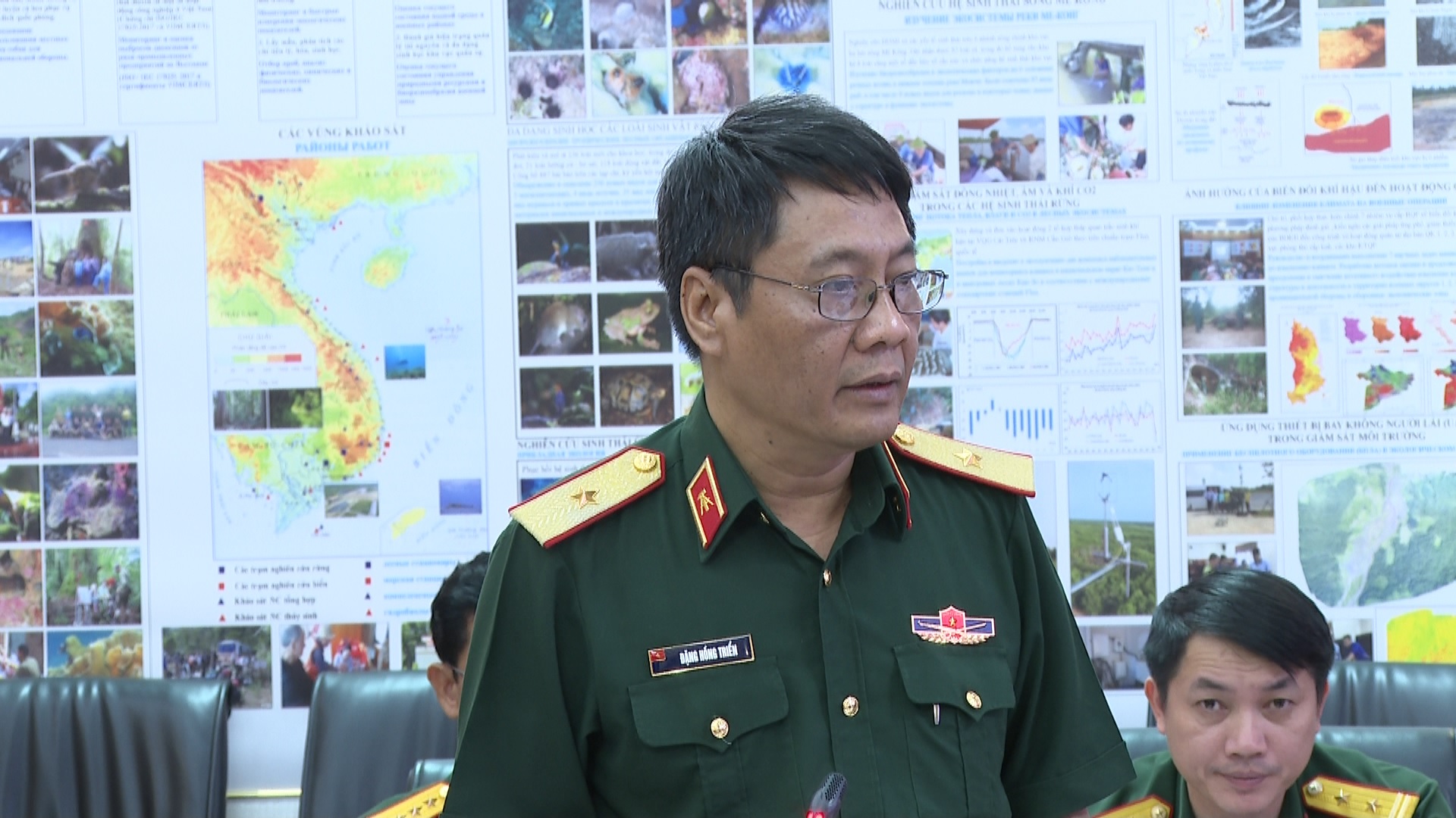 Thiếu tướng Đặng Hồng Triển, Tổng giám đốc Trung tâm Nhiệt đới Việt-Nga trình bày báo cáo tại phiên họp.